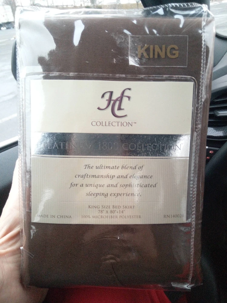 This is a luxurious HC Collection Platinum 1800 Collection King Bed Skirt in a rich brown color. Made from 100% Microfiber Polyester, it features a solid color design with a drop length of 14 inches, suitable for a box-spring bed. The rectangular bed skirt is machine washable for easy care and suitable for use in bedrooms. The brand is Hotel Collection, and it is part of the Platinum 1800 Collection, adding a touch of luxury to any bedroom decor.