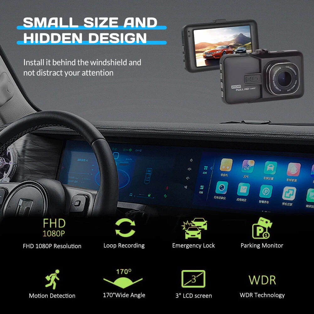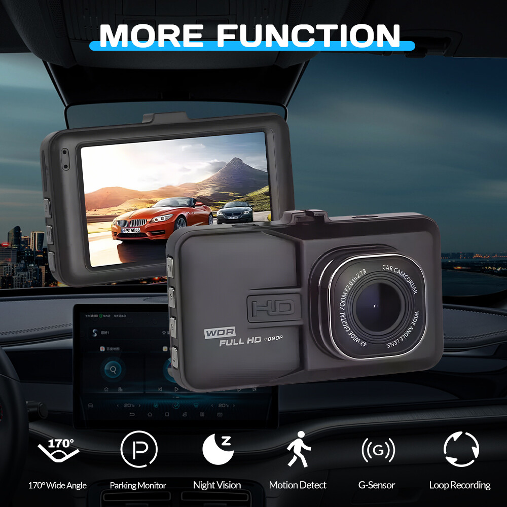 Specification: Video resolution: 1920*1080 Screen: 3.0 "HD screen Installation mode: Suction cup Product list: 1 x Car Dash Cam 1 x Suction Cup 1 x Cigarette Lighter 1 x Rear Camera 1 x Manual