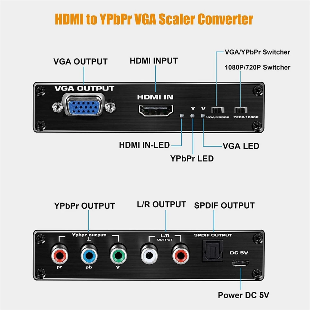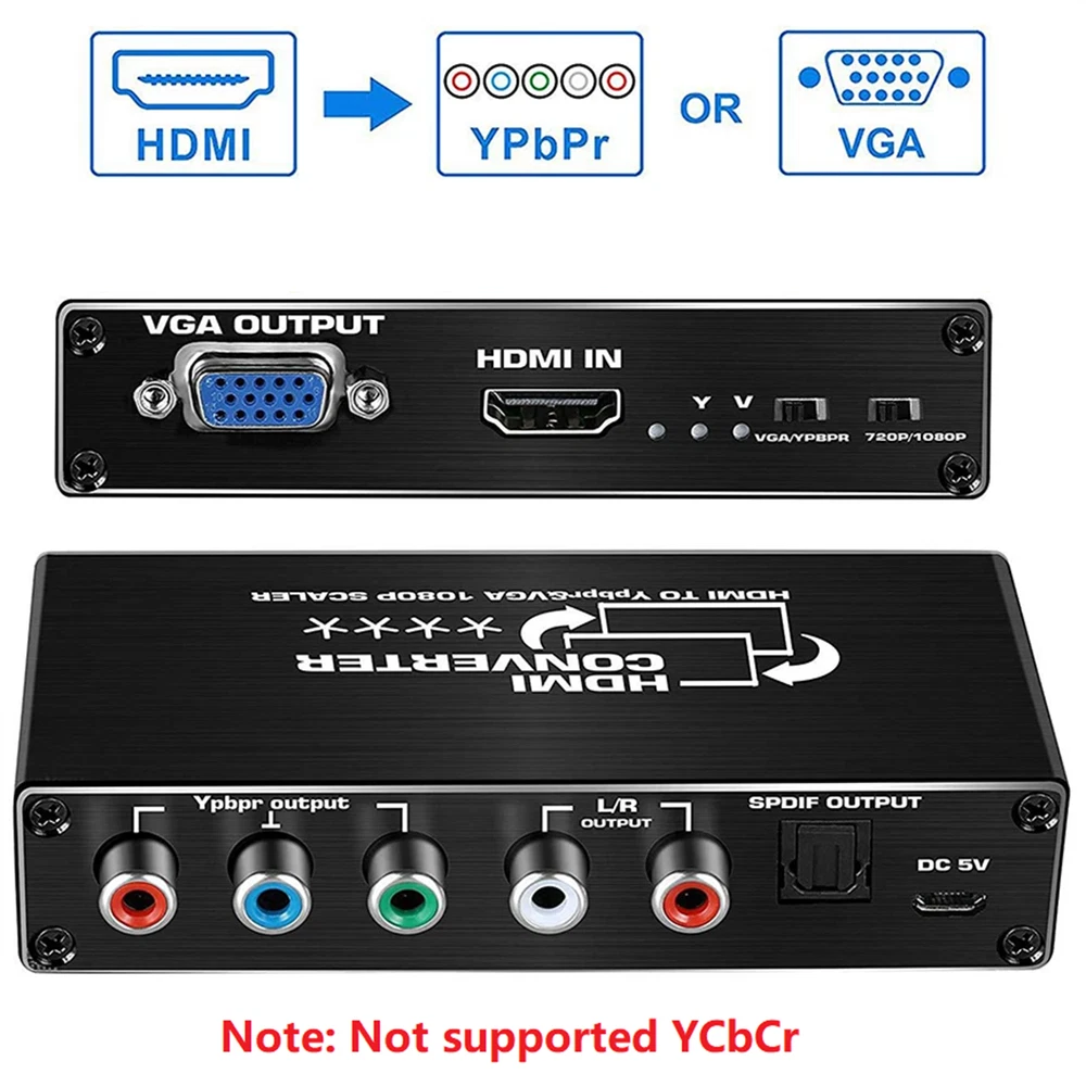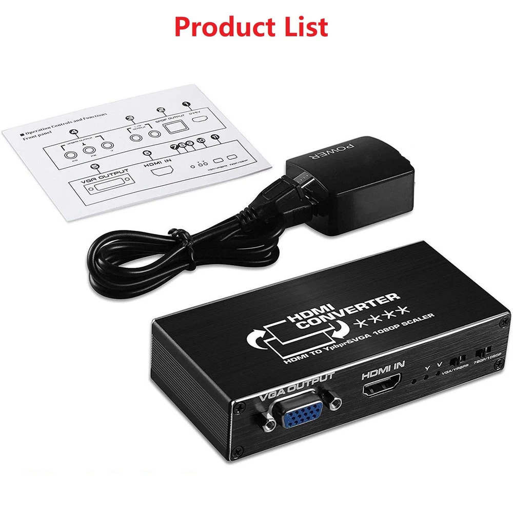 Product Description HDMI To RGB Converter 1080P HDMI To Component Ypbpr Converter With VGA Out HDMI To Ybprp Converter Specifications: Input video signal: 0.5~1.5Volts p-p Input DDC signal input: 5Volts p-p (TTL) VGA or color difference output: supports up to UXGA format, 1080I (60Hz) Audio output: Left and right channels or fiber optic output Maximum transmission bandwidth: 5.1Gbps Maximum working current: 600mA Power supply: DC5V/1A Performance: 1. Support video input: HDMI 1.2a, video output 1080P without signal loss, transmission distance 30-45 meters 2. Support audio output: SPDIF (Optical)+R/L analog, input support: up to UXGA format and 1080I (50/60 Hz) 3. LED indicator light, when the signal source or signal terminal is in working state, the corresponding indicator light will turn on Feature: 1. Compatible with most HDMI connected devices: HDMI (input) to YPbPr (output) 1080p scaler compatible with for Nintendo Switch/ for Laptop/ for PS4/ for PS3/ for Roku/ for Amazon Fire TV/ for Blu Ray DVD/ HD projector/ for Xbox 360/ for DVB receiver/game console, etc. It also supports signals from DVI-HDMI cables or adapters (not Included) 2. Maximum support for 1080P: supports 1080P/1080i/720P/576P/480P, HDMI input: supports 1080p/720P/720i resolution for Ypbpr VGA output It does not support 4K (Note: It is not possible to output analog YPbPr and VGA videos simultaneously.) 3. Plug and play Product List: 1* HDMI To RGB Converter 1* Power cable 1* DC5V Power adapter 1* User manual Note: Not supported YCbCr Shipping Returns Contact Us Payment 1. Items sent from US warehouse. 2. Receiving time = Processing time + Shipping time. 3. Processing Time: Around 1-2 business Days. 4. Shipping Time: 3-5 business day. It may have a little delay during some holiday (such as Christmas), any problem, please feel free to contact. Always believe we can figure things out with communication, if it comes to return, the pacakge must be intact and the same as you receive. If you have any questions, please feel free to email our service specialists 24 Hours a Day, 7 Days a Week. We will reply you ASAP. Return/refund is accepted within 30 days after the buyer receives the item. NO exchange will be accepted after 30 days from the date when the item is received. Please contact us first before returning your product!!! If you have any questions, our Customer Service staffs welcome you to email us. We strive to answer all questions and resolve any problems as quickly as possible. We care about our valued customers, and will always try to help you. So if you have any problems, You can contact us 7*24, we will reply at the first time. We accept all verified payments from ebay. Orders will be shipped after receiving cleared payment. Shipping 1. Items sent from US warehouse. 2. Receiving time = Processing time + Shipping time. 3. Processing Time: Around 1-2 business Days. 4. Shipping Time: 3-5 business day. It may have a little delay during some holiday (such as Christmas), any problem, please feel free to contact. Returns Always believe we can figure things out with communication, if it comes to return, the pacakge must be intact and the same as you receive. If you have any questions, please feel free to email our service specialists 24 Hours a Day, 7 Days a Week. We will reply you ASAP. Return/refund is accepted within 30 days after the buyer receives the item. NO exchange will be accepted after 30 days from the date when the item is received. Please contact us first before returning your product!!! Contact Us If you have any questions, our Customer Service staffs welcome you to email us. We strive to answer all questions and resolve any problems as quickly as possible. We care about our valued customers, and will always try to help you. So if you have any problems, You can contact us 7*24, we will reply at the first time. Payment We accept all verified payments from ebay. Orders will be shipped after receiving cleared payment. Backlit Handheld Microphone For QYT KT-8900 KT-UV980 KT-7900D KT-780plus Radio 22.99 USD New Power Wheels Adapter Component For AEG/For RIDGID 18V Lithium Battery 19.99 USD 5x 5/32" Diamond Chainsaw Sharpening Rotary Bit Burr Stone File for Craftsman A 11.39 USD Alloy Vintage Teisco Tune O Matic Electric Guitar Fixed Bridge Tailpiece Parts 19.99 USD 1/100 Eagle F-15 U.S Air Force Fighter Diecast Aircraft Plane Model Scene Gift 27.99 USD 14Pack Replace Snap Presser Feet For VIKING HUSQVARNA Sewing Machines 335 330 13.29 USD 1/72 F-22 Fighter Bomber Aircraft Diecast Fighting Jet Model Military Collection 21.99 USD 1/100 A380 Lufthansa Civil Airliner Paper Plane Model Aircraft Unassembled Kit 18.19 USD Drill Bit Carbide Rotary File Metal Milling Grinding Cutter Tool Part AX1625M06 16.39 USD DC 10-55V 12V 24V 48V 60A PWM DC Motor Speed Controller CW CCW Reversible Switch 22.69 USD USB Rosin Atomizer Rosin Flux Pen PCB Short Circuit Detector No Need Soldering 19.99 USD 19.99 USD Remote Controller Part For LG 60LB7100UT 65LB6300UE 65LB7100UB Accessories 20.69 USD 1Pc Replacement Bearing Housing For Stihl FS38 FS45 Trimmer Parts 4144-640-59 16.39 USD 12V Car Home Audio Mini Stereo Amplifier 2.1 Channel HiFi Bass Speaker Power Amp 23.99 USD 7" Steel Guitar Fret Wire End Cutter Nipper Puller Plier String Luthier Tool 19.99 USD 21pcs Steel Polymer Clay Cutters Set DIY Earring Jewellery Cutting Mold Tool 8.99 USD Muscle Signal Sensor EMG Detector Measuring Module for Arduino Controller 26.99 USD High Quality Acrylic Protective Case With Heat Cooling Fan for Raspberry Pi 5 14.99 USD Dual RJ11 Ports USB 56K External Dial Up Voice Fax Data Modem For Win 7/8/10 29.69 USD 4K 1080P 1x2 HDMI Splitter Screen Repeater Video Distributor Monitor Duplicator 8.99 USD 10PCS Acrylic Aquarium Glass Cover Bracket Holder Fish Tank Lid Clips Bracket 11.99 USD 19.99 USD New 8" Air Filter For Onan 140-2628 140-1496 140-1228 NHA T26 16 - 18 HP Engine 15.69 USD 1/300 20cm Hawaii B777 Plane Model Alloy Diecast Airplane Aircraft Co