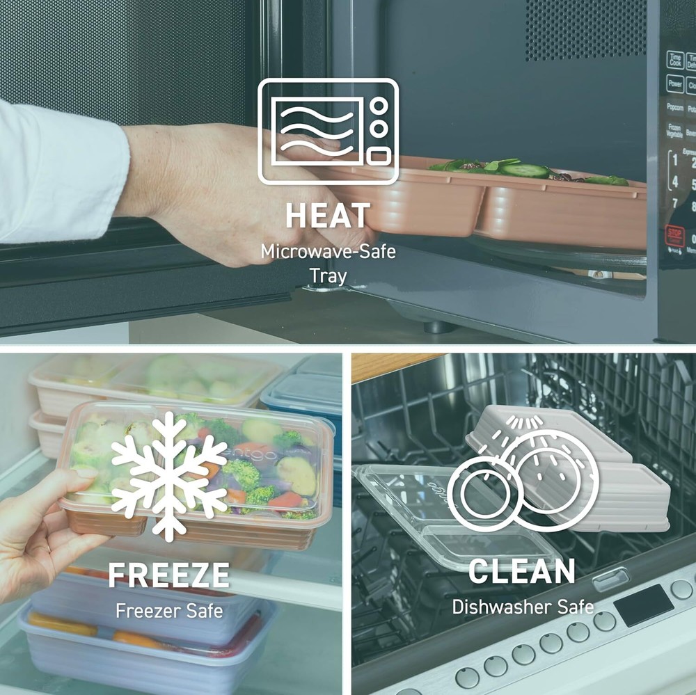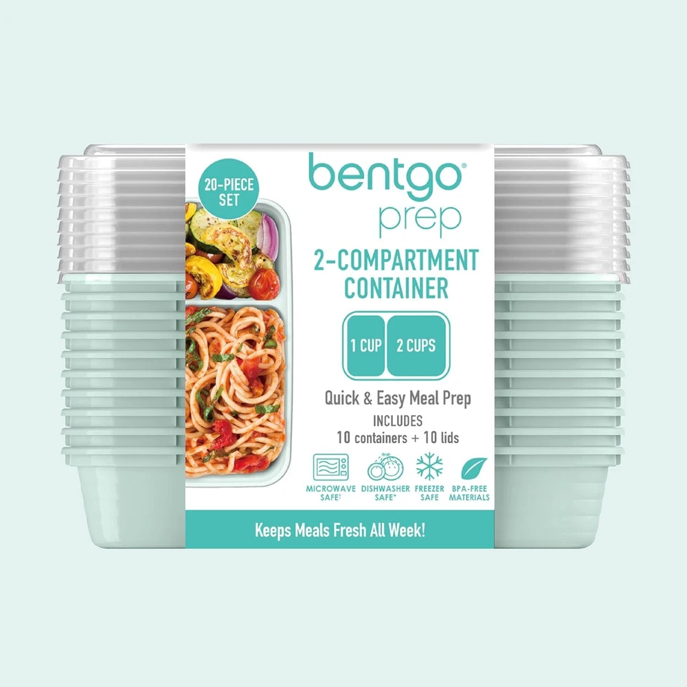 Everyone’s Favorite Meal Prep Pack*: Bentgo is America’s go-to brand for maintaining healthy habits! Pack nutritious meals for the entire week with this practical 20-piece set that comes with ten 2-compartment trays and ten custom-fit lids that help seal in freshness, so you can enjoy breakfasts, lunches, dinners, and even leftovers on the go. Portion Controlled Design: No need to measure your portions—volume is already embossed on the tray to help you with your healthy eating goals, diet, or weight loss plans. The custom-fit lids keep food fresh all day long and stack together neatly to save you space in your pantry. Plus, all the lids are clear, so you can easily identify what food is inside at a glance. Easy To Heat & Clean: Safely heat up your food straight from the freezer or refrigerator for warm, delicious meals and leftovers. Each meal prep container is both microwave and top-shelf dishwasher safe. Note: before microwaving, open the lid corner to allow steam to vent. For best results, hand wash to extend the life of the product. Durable & Reusable: Made of tough, but safe, BPA-free materials, Bentgo Prep containers are designed to last meal after meal, so you can ditch single-use plastics with these eco-friendly containers. They are lightweight, portable, and easy to carry to the gym, office, dorm, soccer field, and more. What You Get: 10 two-compartment trays, 10 custom-fit lids, electronic meal prep book, and caring customer support.