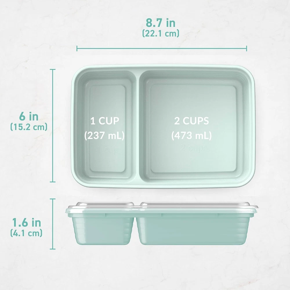 1. These lightweight, reusable containers are a game-changer for meal prep! The two-compartment design keeps food fresh and organized, while the portion control markings make healthy eating effortless. Perfect for busy lifestyles—durable, BPA-free, and super convenient for lunches, snacks, or leftovers. Love how they stack neatly and save so much fridge space! Highly recommend for anyone wanting to eat better without the hassle.