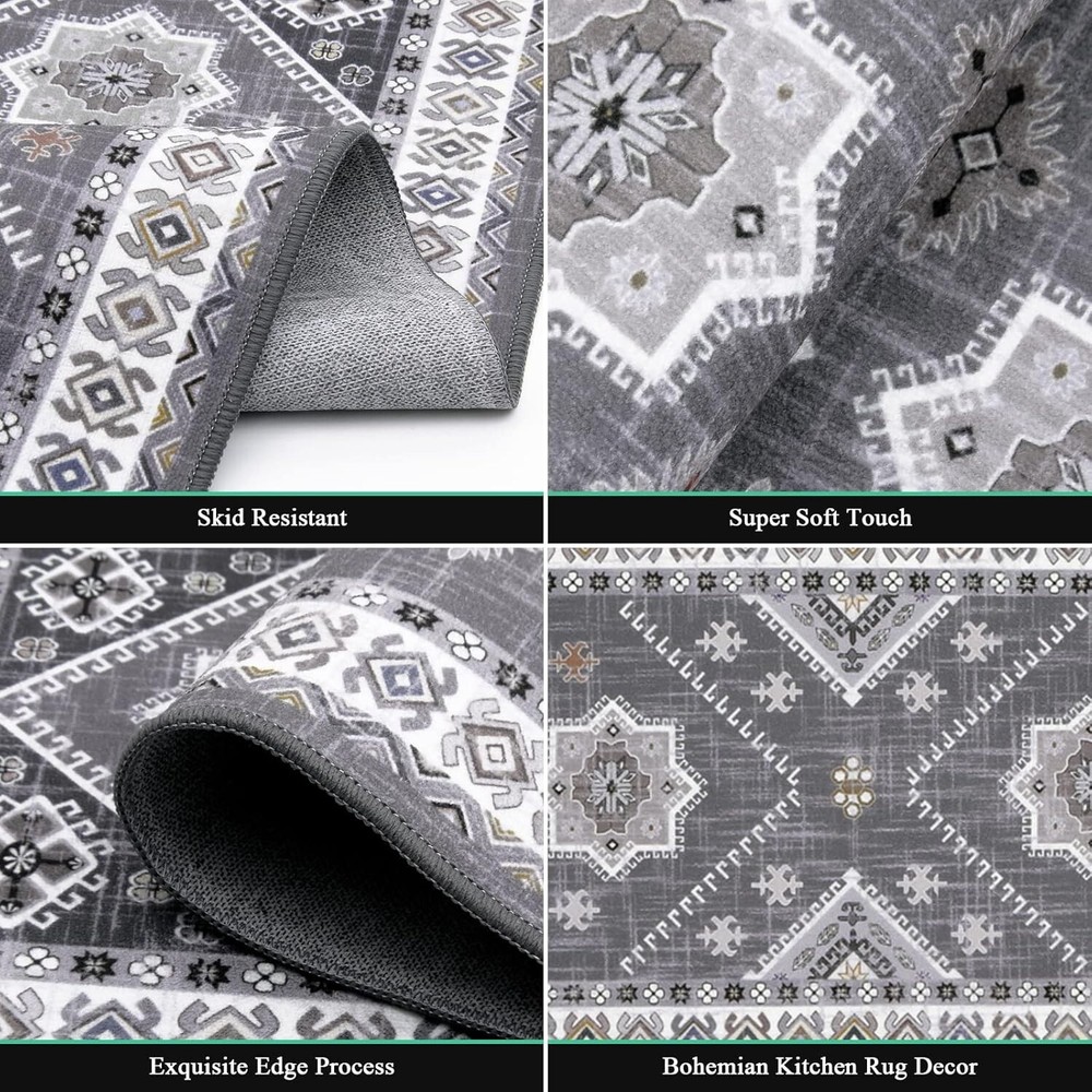 HEBE Boho Kitchen Rug Sets 3 Piece with Runner Non Slip Kitchen Rugs and Mats Washable Kitchen Mats for Floor Thick Kitchen Floor Mat Carpet Runner Rugs for Hallway Laundry Holiday Decor Kitchen Rugs Sets 3 Piece with Runner: This farmhouse kitchen rugs set include 3 piece kitchen floor mat which measures 20"x32"+20"x47"+20"x59". Perfect combination size, you can arrange them at will in any home, office or christmas holiday decoration Durable Kitchen Mats for Floor: Our kitchen runner rug set made of premium polypropylene fabric material, very durable use.Classic printing with rich elements and dyeing process, non-fading and non-shrink, protect your kitchen floor dry and clean No Slip Kitchen Rug Set with Runner: The boho kitchen floor mat set come with premium non skid TPR and cotton backing, durable, reliable and practical, which make our kitchen runner set effective to avoid slipping and scratching,protecting your family Washable Kitchen Rug Runner Set: Our washable rug can be routinely cleaned with a regular vacuum cleaner or machine washable for a deep clean.The farmhouse area rugs for kitchen has been tested for many machine washes, will not fade, will not deform Widely Use Vintage Accent Rugs: The distressed hallway runner rug carpet is ideal for wash room floor mat, laundry room rug, kitchen rug carpet, indoor doormats, hallway runner rug, bathroom rug,also great gift Christmas,Thanksgiving and New Year