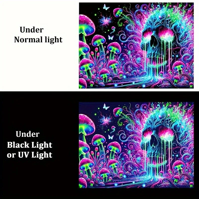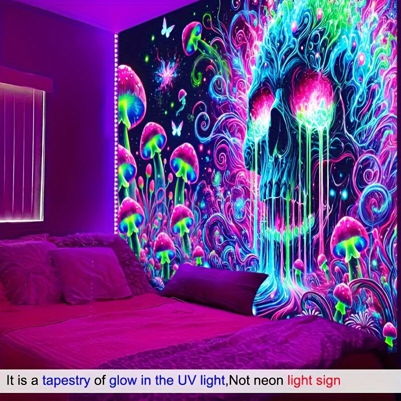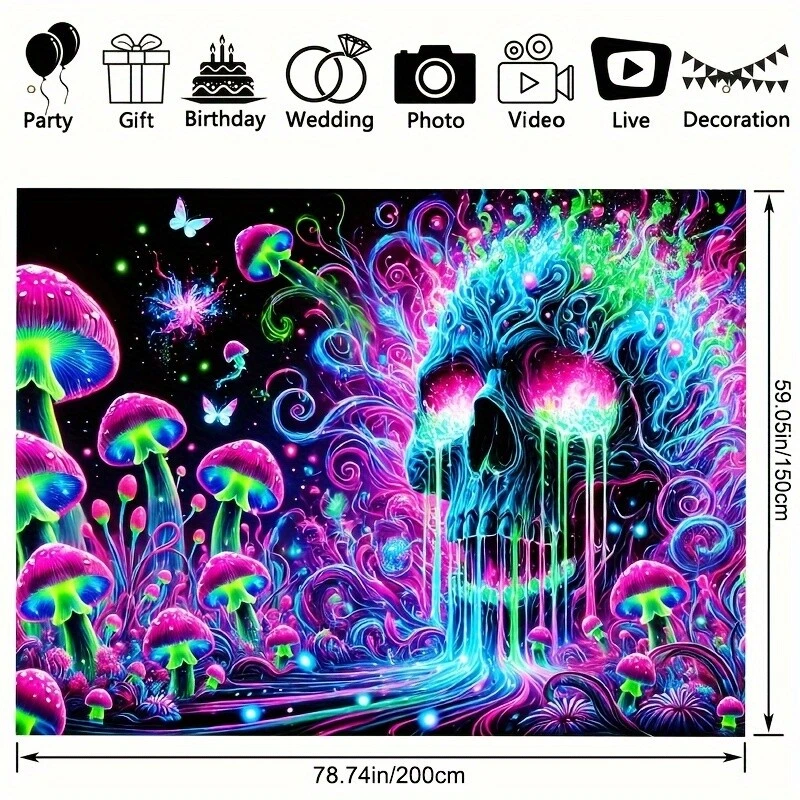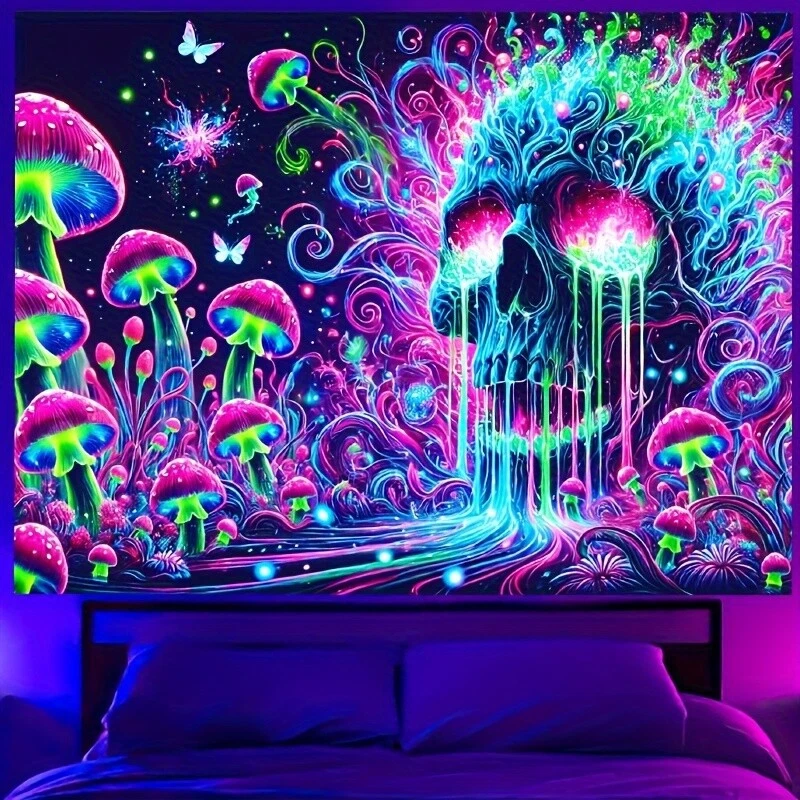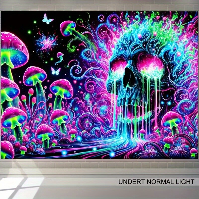 HEGO Psychedelic Skull Tapestry - 1pc, UV Black Light Fluorescent Polyester Wall