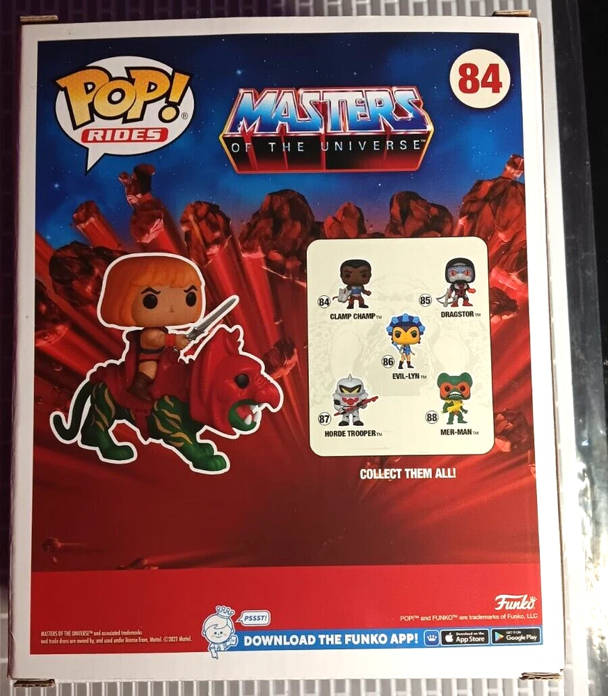Unleash the power of Grayskull with the Funko POP! Masters of the Universe Flocked He-Man on Battle Cat vinyl figure. This collectible captures the essence of the iconic hero in his classic stance, ready to take on any challenge. The flocked detailing emulates the textured look of the legendary battlecat, adding a unique touch to this beloved character.Ideal for both avid collectors and casual fans, this figure is part of the exclusive TargetCon release. The high-quality vinyl construction ensures durability, making it a standout piece in any Masters of the Universe collection. Whether displayed on a shelf or desk, He-Man is poised to defend against any villainous threat. A brand-new, unused, unopened, item in its original packaging. Figure hasn't been taken out of the box. Pop! Television Series Stands 3 3/4 Inches Tall Be sure to checkout all of my other Funko Pops Available!