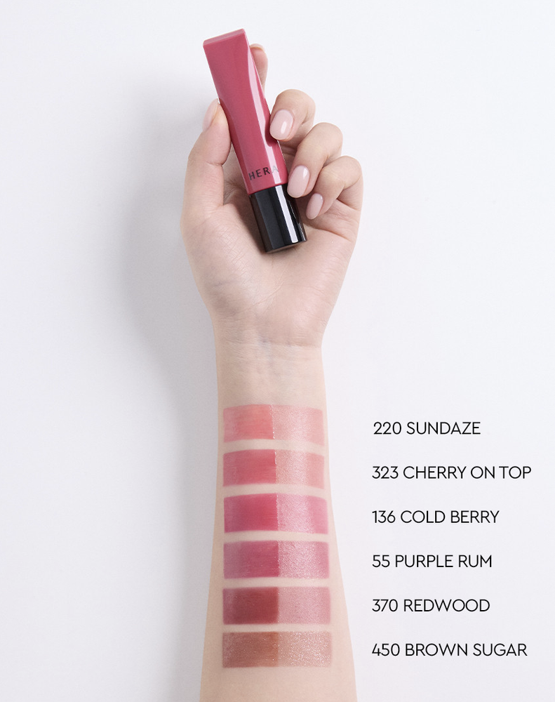 Model: HERA Sensual Tinted Shine Lip Serum Period After Opening (PAO): 12M Type: Lip Gloss Country of Origin: South Korea (Republic of Korea) Brand: Hera Effect: Shine Shade: Sundaze, Cherry On Top, Cold Berry, Purple Rum, Redwood Size: Standard Formulation: Liquid
