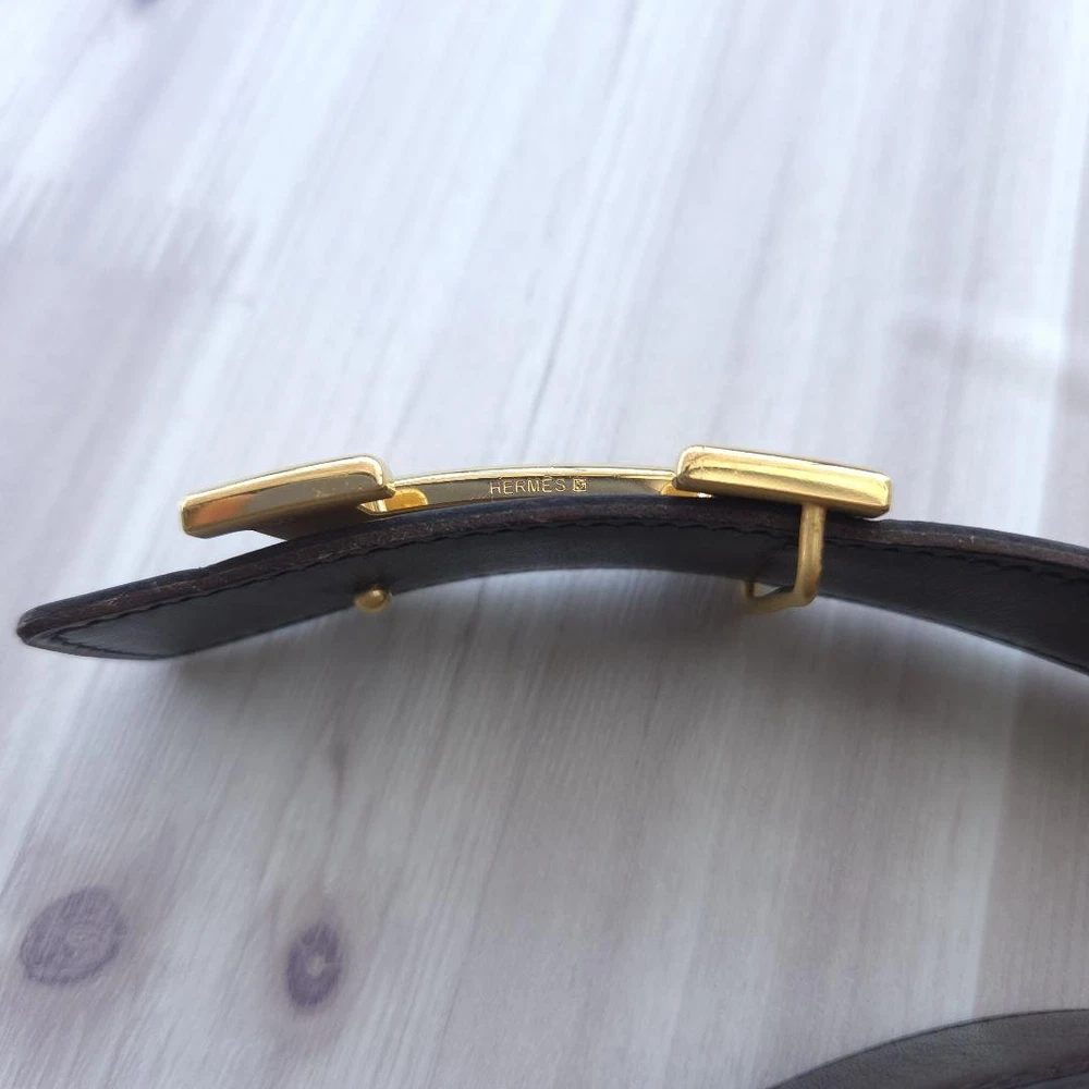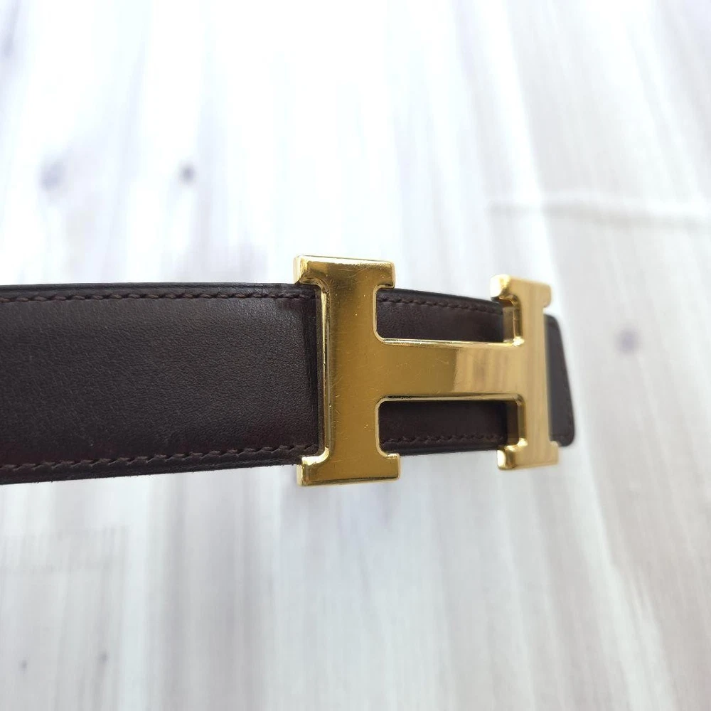 HERMES Constance H-buckle Leather Belt Margiela Era Gold Reversible 2002 Description This is a HERMES Constance H leather belt from the Margiela period. It features a distinctive gold H-buckle and was purchased from an authorized store . Reversible between dark brown and black , it matches a variety of styles. It is approximately 39.0 inches long and 1.2 inches wide, and is stamped □F, indicating it was manufactured in 2002. There are some small scratches, but overall it is in good condition. Shipping Shipping from Japan with Tracking Number & Insurance. We usually ship out your order within 10working days after receiving your payment. Payment Please follow the payment method displayed on your ebay. International Buyers - Please Note: Import duties, taxes, and charges are not included in the item price or shipping cost. These charges are the buyer's responsibility. Please check with your country's customs office to determine what these additional costs will be prior to bidding or buying.