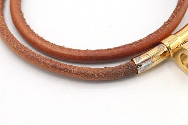 HERMES Double Kelly Bracelet Natural Gold Hardware Leather Metal Choker Bangle About This Items ■Please see photos for product details. ■Brand : Hermes ■Product name : Double Kelly ■Color : Natural and gold hardware ■Material : Leather and metal ■Size : Bracelet (double) : Approx. 6.3in(16cm) around the arm Choker : Approx. 13.6in(34.5cm) around the inside Leather width : Approx. 0.1in(0.3cm) ■Weight : Approx. 0.02lb(8.5g) ■Attachment :None Condition ■Used Scratches and stains. Outside: leather is faded, scuffed, darkened stained and fluffed. Inside: - Hardware: minor scratches, oxidation discoloration. PAYMENTS We accept PayPal and all major Debit / Credit Cards. We can only ship your item after your payment clears. We ship within 10 days of payment. CHECKOUT Please check your address before paying because we can ONLY ship to addresses that are entered before placing the order. We cannot change an address after the order has already been placed. Shipping Packages:Box and BubblerupPackages usually leave our warehouse within 10 days of payment. Weekend orders will ship on Monday or Tuesday. We provide valid Tracking Numbers for all orders. We always send the item with a tracking number. So please place an order without any concern on delivery. You can always track the delivery status. Shipping is only available to the address registered in eBay. If you want us to send another address, please change your address on eBay and then place an order. Shipping is available from Monday to Friday. Weekends are not available because freight (shipping) companies are closed. We do not mark merchandise values below value or mark items as gifts Japan, US and International government regulations prohibit such behavior. If your address is in the remote areas defined by the freight (shipping) company, please pay the additional shipping fees with PayPal. International Packages We ship to all US Territories, Europe and Asia and Middle East and Australia and Canada including Guam and Hawaii.All our international packages ship under the Fedex and Japan Post and UPS and DHL. CUSTOMER SERVICE If you have any questions or issues, we are at your service. You can email us anytime through eBay messages. RETURN INFORMATION We offer a standard FREE 30 days refund or exchange policy. Item must be returned in original condition in order to receive a full refund. CUSTOMS DUTY Import duties, taxes, and charges are not included in the item price or shipping cost.These charges are the buyer's responsibility.Please check with your country's customs office to determine what these additional costs will be prior to bidding or buying.We will reply to your question or invoice within 3 days.We can't not reply gifts or unreasonable requests such as declared amount.