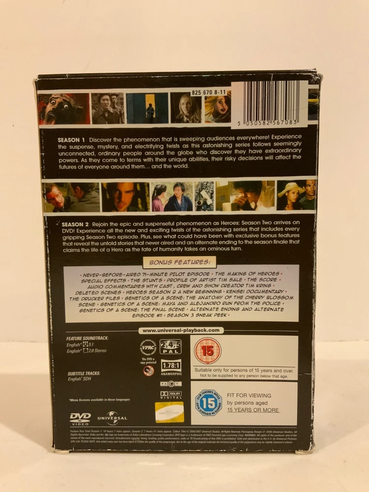 This is for Season One & Two of TV Series HEROES. The CD’s are in great condition and the case is also in gOOD condition with a little wear on bottom from shelf wear. They are from a smoke free home, please review all pictures and if you have questions just ask. I have 100's of DVD movies, VHS movies, CD's, Albums, & Cassettes of music,... country, Christmas, Classical, Rap & Soul, 30's thru 60's, Modern rock, & German and other foreign tapes...... Please ask for something you want and I might have it. These come from a smoke free home, kept in A/C, good quality products. I combine postage, use your CART to put multiple items in and REQUEST TOTAL FROM SELLER so I can get you the best shipping rate I can.