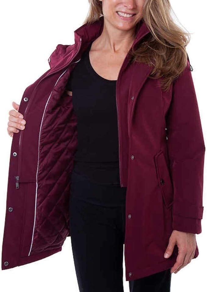 This HFX Women's Performance Cozy Pockets All Weather Trench Coat in Zinfandel is a must-have for any fashion-forward woman. Made with wind-resistant fabric and water-resistant material, this jacket is perfect for any occasion, whether it's a casual day out or a formal event. The jacket features a zipper closure, zipper accents, and pockets for added convenience. The jacket is available in size small and is made with polyester outer shell material and lining material. The insulation material is also made of polyester, providing warmth during cold weather. This trench coat is designed for women and is perfect for any American-themed outfit. Get your hands on this stylish and functional jacket today!