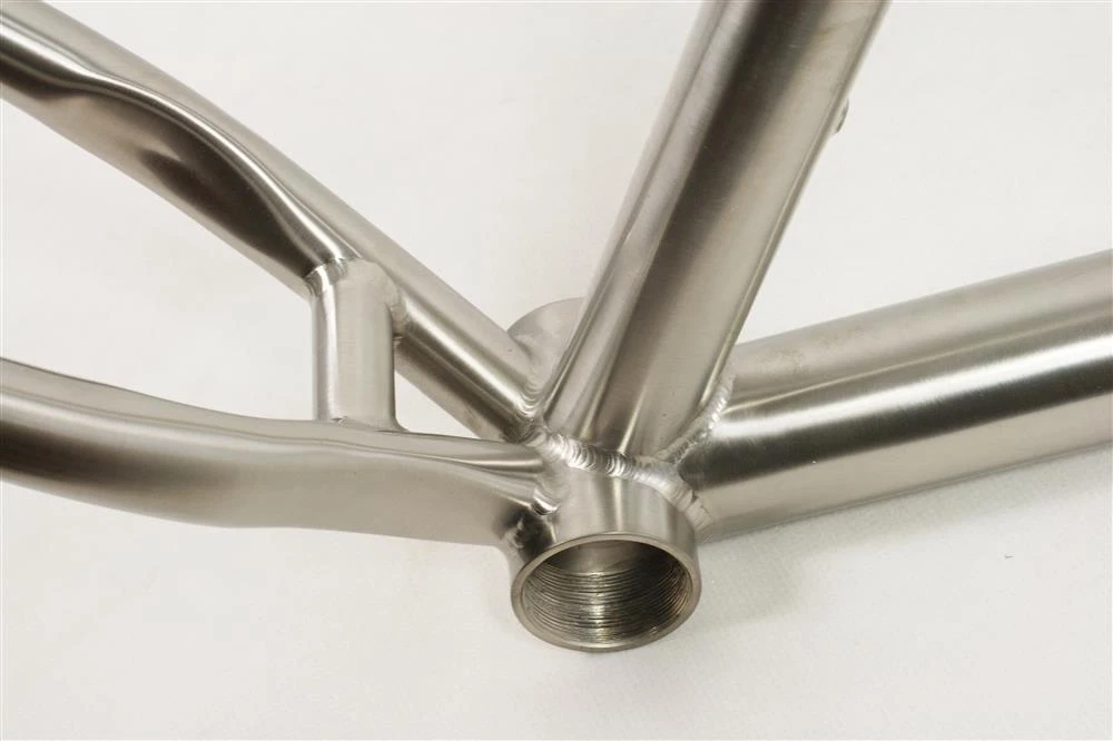 Item Description HI-LIGHT titanium frame,professional design and beautiful craftwork,hydraulic forming technology *Cold-worked 3Al/2.5V seamless hydraulic forming titanium tubing. *New design down tube,improved stiff of BB. *1-1/8" CNC machined head tube *Polished finish *Use 27.2mm seatpost *68xBSA1.37”x24T BB shell *With rack install holes and fender holes 1.Titanium alloy have intension strength 75% greater than most aluminum and steel used in cycling 2.Titanium frame easy absorb small shock like steel frame,more comfortable than aluminum frame. 3.Titanium frame 5 times fatigue life than steel or aluminum frame,We offer lifetime warranty for our titanium frame. 4.We accept custom build frame,offer best frame with suitable geometry size to rider. 16(S) 18(M) 20(L) A-Seat tube length 406 457 508 B-S/T angle 73.5 73 73 C-Effective top tube length 574 594 614 D-H/T angle 70.5 70.5 70.5 E-Head tube length 117 130 145 F-Chains stay length 424 424 424 G-Wheel base 1062 1077 1097 Returns for any reason will not be accepted. Shipping tips American buyers, This product will be shipped from the US warehouse within 30 working days after payment Buyers from other regions please contact me before purchasing to confirm the shipping method