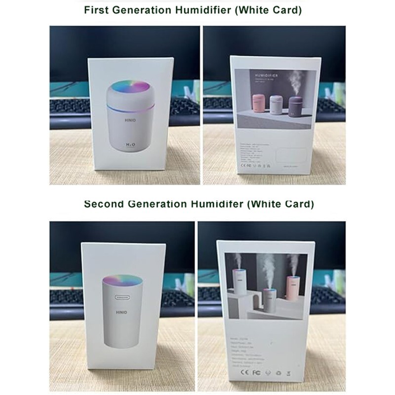 Tabletop Humidifier, ultrasonic, portable, 270ml car humidifier, nanometer fine mist, 2-step humidification volume adjustment, USB powered, timing off About this item: Uses and functions: the USB portable mini humidifier is easy to use in the living room, bedroom, car or office and can be easily inserted into the USB port. It can increase air humidity and improve dry and itchy skin. It also has a relaxing effect. Usage and features: by adding a few drops of water-soluble aromatic oil to the humidifier, the room can be filled with a subtle fragrance to relax the body and mind, and to change your mood while you work or study. The humidifier also uses an improved ultrasonic transducer to fit into quiet areas without disturbing work or sleep, with an operating noise level of approximately 25 decibels. Three types of feeling lamps, convenient to operate: equipped with coloured LED lamps and can switch between three types of lamps by pressing and holding the power button: RGB lamp, gradient lamp, monochromatic lamp, creating a carefree atmosphere. Capacity of the first generation humidifier is approximately 300 ml; capacity of the second generation humidifier is approximately 270 ml; two spray modes: continuous spray mode for 4 hours, intermittent spray mode for 6 hours; safe mode: the humidifier automatically switches off when it runs out of water. 【Caution】 ① Do not use non-water soluble essential oils or perfume fragrances. Otherwise, the cotton wick will clog and render the humidifier unusable. ② Make sure the cotton wick has been soaked for several minutes before switching on. ③ If there are any quality problems, please email us at any time. Description: Second Generation mini Air Humidifier Aroma Oil Diffuser. 270ml water tank. With Colorful Night Light. 2 spray modes adjustable, once press for constant spray, twice for interval spray. 5V 1A micro USB powered, compatible with any device with USB port like laptop, desktop, power bank, socket, power outlet. Aumomtic power off function,4 hours scheduled shutdown time for constant spray, 6 hours for interval spray. Small and lightweight, perfect for home bedroom, office in 20-30 square meters, or portable for car, travel. Specification: Rated input: DC5.0V / 1.0A Working current: 250-350mA Rated power: 1W Water tank capacity: 270ml Spray volume: 25-35ml / h Scheduled shutdown time: 4 hours/6hours Size: 78x119mm/3.07x4.68inch Material: ABS/PP/Electronic components Package Includes: 1 x Second Generation Humidifier 1 x USB Cable 1 x User Manual 1 x Cotton Swab