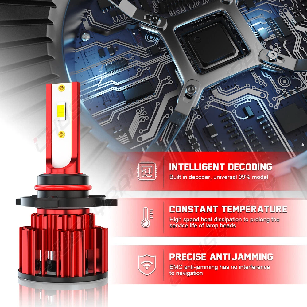 Feature 1.With fan design, silent hydraulic oil fan technology, silent high speed, efficient heat dissipation, double heat dissipation (aluminum parts and fan), thermal cooling cycle system (the fan plays a key role in the life of the whole light, using the drone level custom fan small loss, large air volume, fast heat dissipation, long life) 2.High thermal conductivity red copper substrate, excellent thermal conductivity, thermal conductivity is much higher than the market aluminum substrate, the same conditions, aluminum substrate than aluminum substrate thermal conductivity rate more than twice as fast, accelerate the speed of thermal conductivity, so that the temperature of the lamp beads rapid conduction, enhance the service life of the lamp beads (light source). 3.Intelligent chip temperature control system, intelligent identification of the product temperature in real time, automatic adjustment of over-temperature current, greatly reducing the risk of product death lamp;. 4.High power, high brightness level MINI product size, built-in driver, installation adaptability is stronger, plug and play. 5.No delay, fast start-up. 6.Perfect light shape cutting line, no scattered light. Specifications Bulb Socket: 9012/HIR2 LED Chips: Automotive grade custom chip 3570 Wattage: 90W/Pair(45W/Bulb) Lumen: 36000LM/Pair(18000LM/Bulb) Color Temperature: 6000K White Voltage(V): DC 9V-32V Current(A): 3.6A±0.15A Working temperature: -40℃~+90℃ Beam Angle: 360° Material: 6063 Aircraft Aluminium Cooling: Built-in Fan IP67 Rated Waterproof And Dustproof Super Long Service Life: ≥60,000 Hours Warranty: 2 Years Certificates: CE, RoHs Product Inclued 2x 9012 HIR2 LED HEADLIGHT BULBS