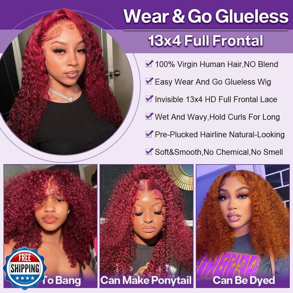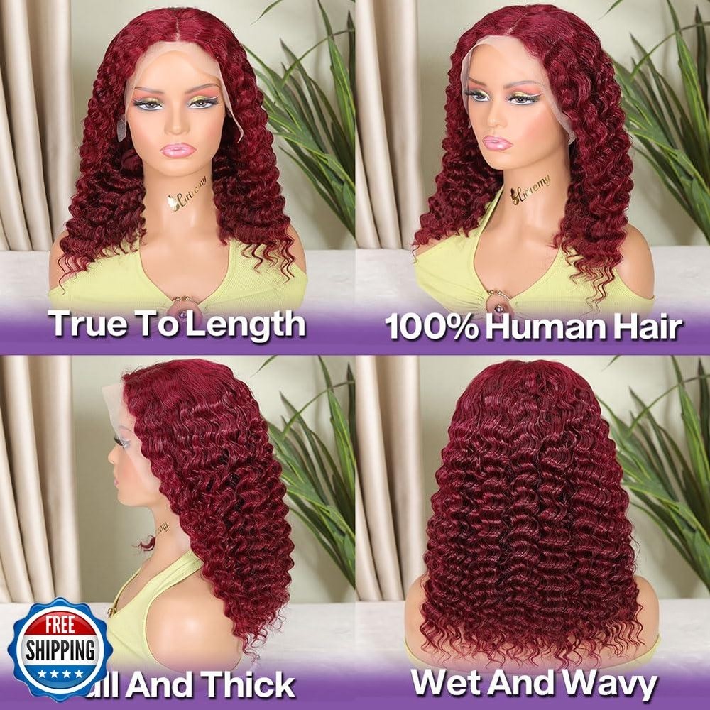 HIRIREMY 99J Burgundy Deep Wave Lace Front BOB Wigs Human Hair Pre Plucked Wear And Go Glueless Wine Red 16 Inch 13x4 HD Short Curly Frontal BOB Wigs Human Hair For Black Women Features 1. Burgundy BOB Wig Human Hair Deep Wave Curly Material: This 99J Burgundy Deep Wave Lace Front BOB Wigs Human Hair Is Made Of High Quality 10A Grade Unprocessed Virgin Brazilian Human Hair, Which Cut From Young Healthy Donor. Can Be Dyed, Restyled Or Straightened As Your Own Hair 2. 99J Burgundy Lace Front Wigs Human Hair BOB: No Shedding & No Tangle, Soft & Bouncy, Full & Thick, Wet & Wavy, Blunt Cut, No Chemical, True To Length, 180% Density, Hold Curls For Long Time. Average Cap Circumferences Size (21.5 Inch To 23.5 Inch) Fit For All Head Size With Adjustable Straps 3. 13x4 HD Transparent Lace Base Wig Cap: Invisible HD Lace Matched For All Skin Tones, Can Be Bleached And Melted Perfectly, Breathable, Comfortable Deep Wave Bob Lace Front Wigs Human Hair Pre Plucked Natural Looking Hairline With Baby Hair Around. Can Do Free/ Middle/ Side/ C Part And High Ponytail 4. Beginner Friendly Glueless Wine Red Deep Wave Frontal BOB Wigs: Ready To Wear And Go Glueless Wigs Human Hair Pre Plucked Pre Cut Wet And Wavy Deep Wave Curly Lace Front Wig Human Hair. No Glue, No Gel, Easy To Install, Adjust And Take Off With Removable & Adjustable Elastic Band. Secure & Stable 5. Suit For Any Occasions: Such As Birthday, Appointment, School, Travel, Theme Party, Celebration, Wedding, Graduation, Vacation, Daily Life, And So On Shipping Free & Fast Shipping: We offer free shipping to most of the USA with a normal delivery time of 3-7 days. However, due to the current situation, additional delivery time (up to 3 weeks) may be required for some items. Alternative Carriers: We may use alternative carriers (e.g., USPS, FedEx, UPS) to ensure your package arrives safely and on time. Due to the use of multiple carriers, we are unable to provide a tracking number automatically. Handling Time: Orders are processed and shipped within 1-2 business days of receiving cleared payment. Shipping Restrictions: Shipping to Alaska, Hawaii, Puerto Rico, Guam, and other US territories may incur shipping charges or delivery restrictions. Please contact us before ordering, or your order can be refunded/cancelled. State Restrictions: Certain items may not be shipped to California due to state regulations. Contact for Tracking Updates: If you require tracking updates or have any concerns about the delivery of your order, please feel free to contact us, and we will be happy to assist you. Return Policy 30-Day Hassle-Free Returns: If you are not completely satisfied with your purchase, you can return the item for free within 30 days of receiving it for a full refund or exchange. Easy Return Process: Contact us, and we will provide you with a prepaid return shipping label and detailed instructions. No Restocking Fee: There are no restocking fees for returns. However, the buyer is responsible for return shipping costs if the return is not due to a seller"s error. Refund Processing: Refunds will be processed within 1 business day of receiving the returned item in its original condition. Feedback Your feedback is extremely important to us. We strive to provide the best products and customer service possible. If you are satisfied with your purchase, please take a moment to leave us a positive review. If you have any concerns or issues with your order, please contact us before leaving negative feedback. We are committed to resolving any problems and ensuring your satisfaction. Contact Us If you have any questions or concerns, please feel free to reach out to our customer support team. You can contact us through the eBay messaging system. We are available Monday to Friday, 9:00 am to 5:00 pm EST, and we will do our best to respond to your inquiry within 24 hours. Thank you for supporting our small family business!
