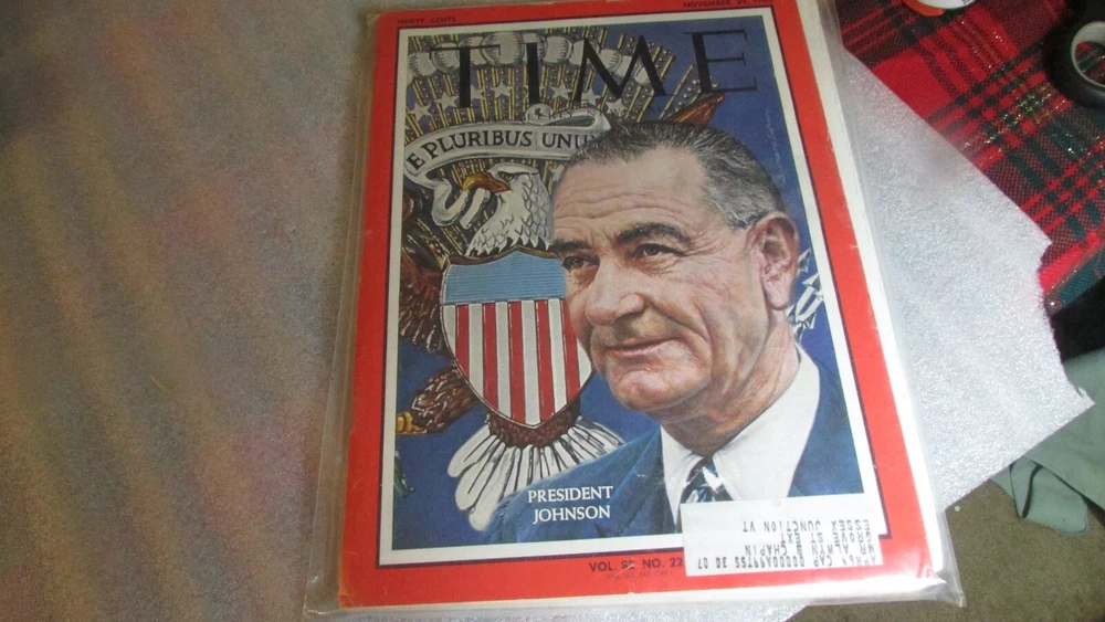 I am not a professional seller. I just have been collecting various items for the past 60 years. It is time for someone else to appreciate what I have collected. Here is a collection of three Time magazines. Each immortalizing moments in history. The sudden movement from Vice-President to President. The election of the first black President, and the re-election of a former movie actor. These magazines are ready to be placed in picture frames and hung besides your other collectibles. What I am offering is as follows. TIME MAGAZINE WITH PRESIDENT JOHNSON ON THE COVER NOV. 29, 1963 This item is totally mechanically sealed in plastic. In excellent condition. This issue came out but 7 days following the assassination of President Kennedy. Check the pictures. I did not remove the plastic so only took pictures of the cover and the back. In excellent condition. TIME MAGAZINE - NOV. 17, 2008 OBAMA COMMEMORATIVE ISSUE A very pristine copy of the magazine featuring the President-elect Barack Obama. Contains many articles on the rise of Obama and other Presidents. Very good condition. TIME MAGAZINE SECOND TERM FOR PRESIDENT REAGAN - JAN. 28, 1985 This magazine is totally mechanically sealed in plastic. As you can see from the pictures it shows the President being sworn in along with his wife at the ceremony. Since it is sealed I did not open it so only showing in cover and back in the pictures. In excellent condition. A word about pricing. Yes, I research each item to see what the going market price is. I then attempt to make my offering price 33% to 50% less then the going market price. On some of my items I do get closer to the going market price but that is only for very special items. An opportunity to add to your collection or start a collection at a reasonable price. USPS prices have increased but I will attempt to ship via the best pricing possible. I choose between first class mail (if item is flat and can fit into a standard envelope), Ground Advantage (if item requires boxing - price starts at $5.40 then is added to depending on weight and size and where it is being shipped to.), or Media Mail (if permissible). But even now that price starts at $4.63. UPDATE: USPS INCREASES PRICING FOR GROUND ADVANTAGE FOR THE HOLIDAYS! FROM WHAT I SEE IT SHOULD ONLY AFFECT MY SHIPPING BY ABOUT $0.50 A SMALL PACKAGE. Purchase more than one of my items and if they are shipped in the same package and same address I will adjust the shipping cost where possible. All depends on what the USPS is charging now. Thank you for viewing this item.