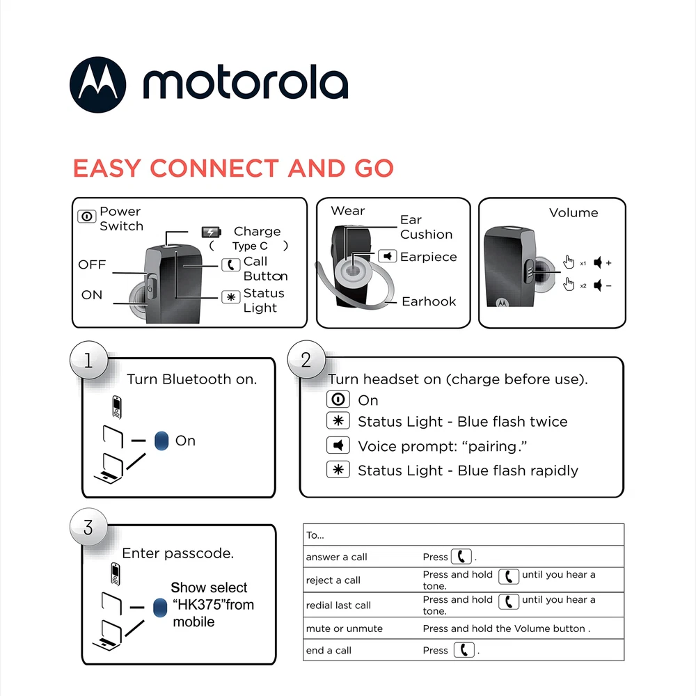 Cordless Earpiece - Wireless Bluetooth earpiece for cell phone is a combination of form and function; Bluetooth phone earpiece allows you to answer calls with the built-in microphone All Day Comfort - Water resistant blue tooth headset earphones have a range up to 40 ft. and a 7 hr. battery life; 3 sizes of rubber ear caps to provide an optimal fit for professionals on-the-go Hands Free Earpiece For Cell Phone - Each earphone has built-in touch/voice controls that allow for hassle-free calling; Multipoint connectivity technology automatically pairs with your devices Single Bluetooth Earpiece - With a water-resistant rating of IPX4, the Bluetooth wireless earpiece repels splashing water from any angle; Bluetooth buds ideal for athletes Includes - Mono Bluetooth ear piece for cell phones, three soft rubber ear caps for a customized fit, one USB type-C charging cable, and a quick-start guide