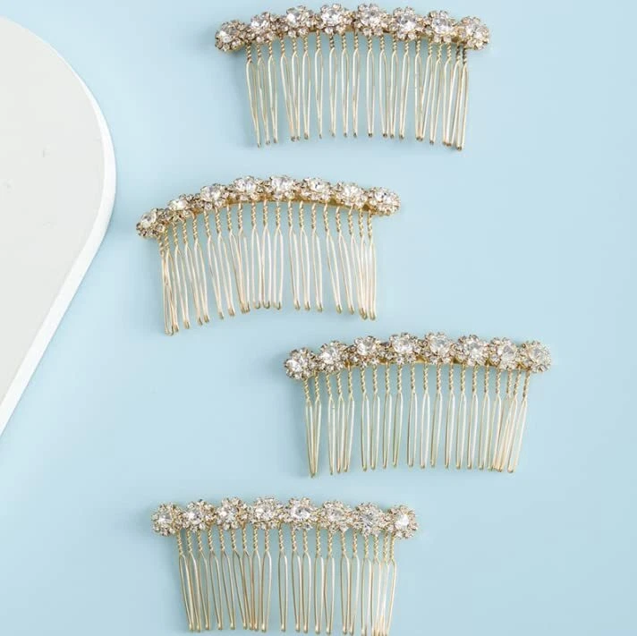 Return Policy Fast Delivery Trusted seller HLLMX 2 PCS 8-Flower Hairpin Combs Crystal Rhinestone Bridal Hair Pins Hair Clips Alloy Pearl Rhinestone Side Hair Combs Crystal Hair Pins Decorative Hair Combs for Bride Bridesmaids Product Description Package includes: 2 pcs alloy rhinestone side hair combs, colour:(gold). Material: These french hair combs are made of alloy,and rhinestone, shiny and not easy to break, and can be used for a long time. Size: Each hair comb measures approx, 3.3inches in length and 1.6 inches in width. The flower hair combs are decorated with 8 crystal flowers, are elegant and delicate, and different angles reflect different brilliance, making you charming and chic. Perfect hair decoration for wedding ceremony, stage performance, party dressing up and most occasions, you can also send it as a present for friends. Shipping Returns Payment Shipping Shipping is FREE to all addresses other than APO/PO boxes in the lower 48 states. All our stock ships from US-based warehouses. Shipped via USPS or UPS (depending on location and package weight) Unless stated otherwise, all orders will ship within 24-72 hours of your payment being processed. Check our feedback to see the great reviews of FAST shipping we offer. Returns Seller does not accept returns Payment We currently accept payment via eBay managed payments only. Once payment is cleared, we will dispatch your shipment within 1-3 business days. Please refer to the "Shipping" tab for more information regarding shipping speed to your destination.