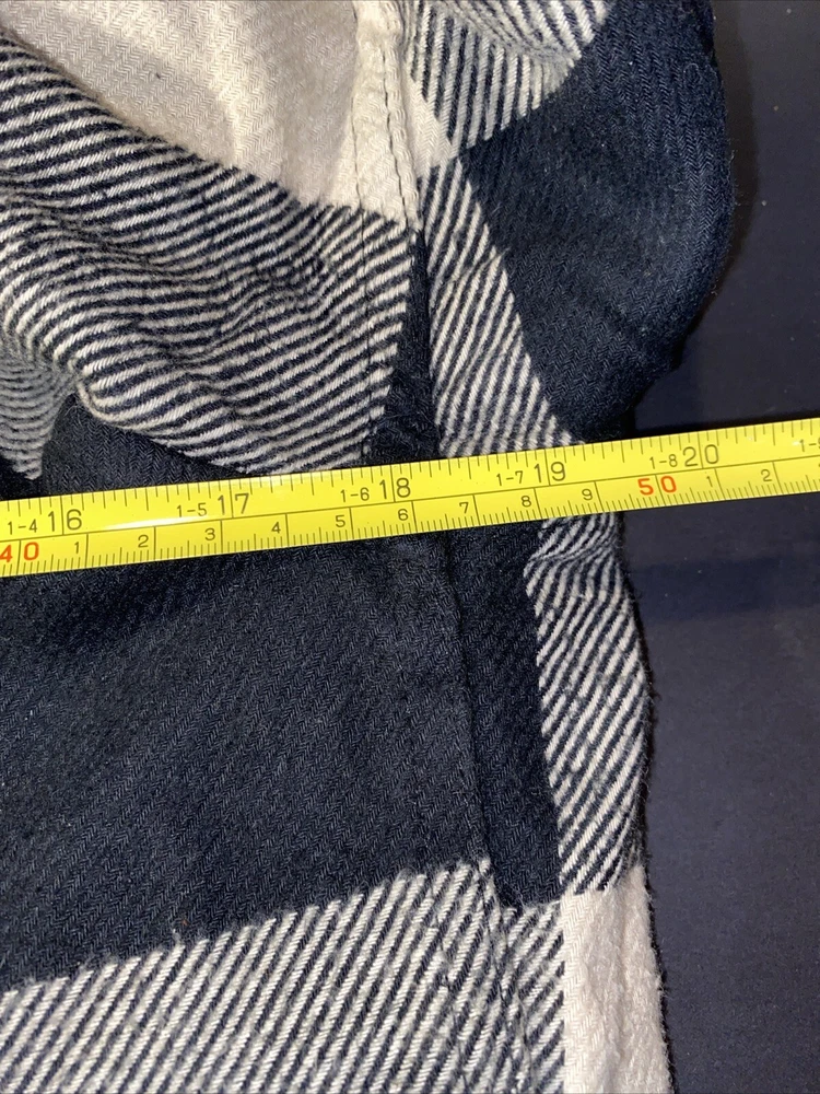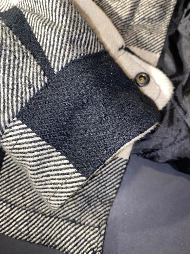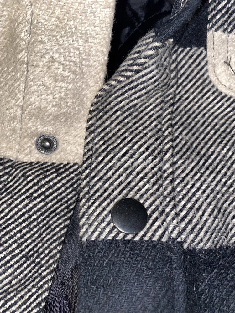 Elevate your casual wardrobe with this stylish H&M Overshirt in Light Beige and black Plaid. The button-up shirt features a padded design for extra warmth and comfort during the colder seasons of fall, winter, and spring. The long sleeves and collared neckline provide a polished look, making it perfect for both casual and formal occasions. The overshirt is made for men in size small, with a chest size that can be viewed in the photos. The snap closure adds a touch of convenience and style to the shirt. This shirt is a must-have for any fashion-forward individual looking to stay warm and stylish during the colder months.