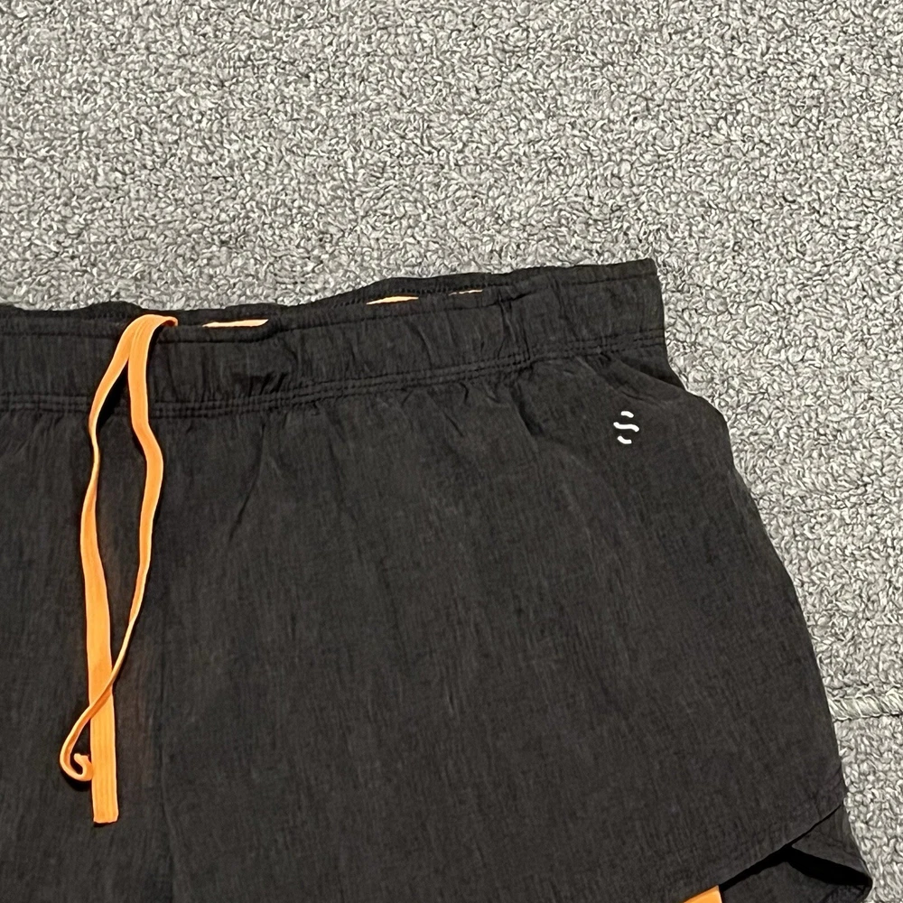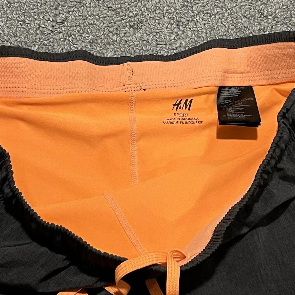 H&M Sport Athletic Shorts Womens 8 Black Elastic Drawstring Lined Running See measurements for accurate fit Waist 15 inches across Inseam 3 inches Rise 10 inches All measurements are done flat lay