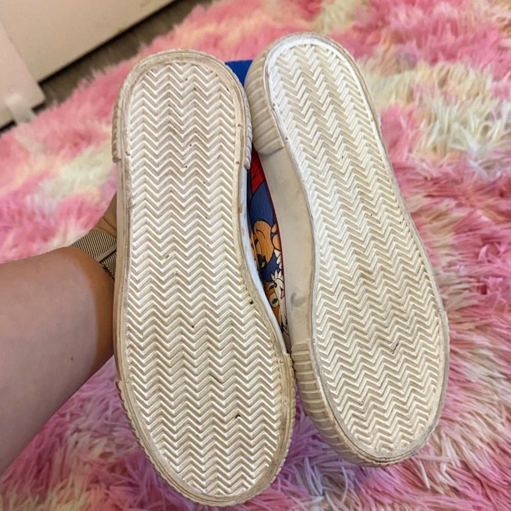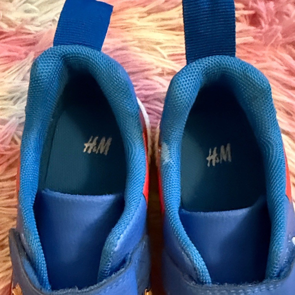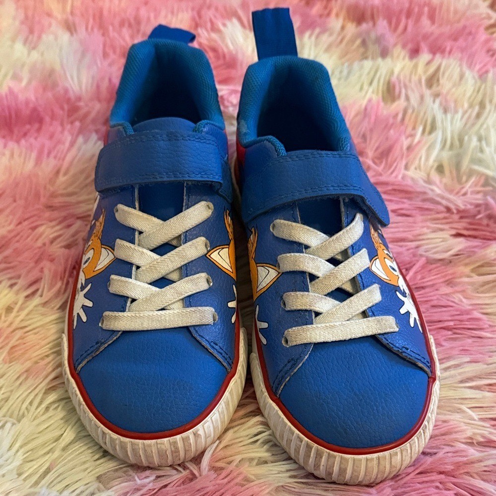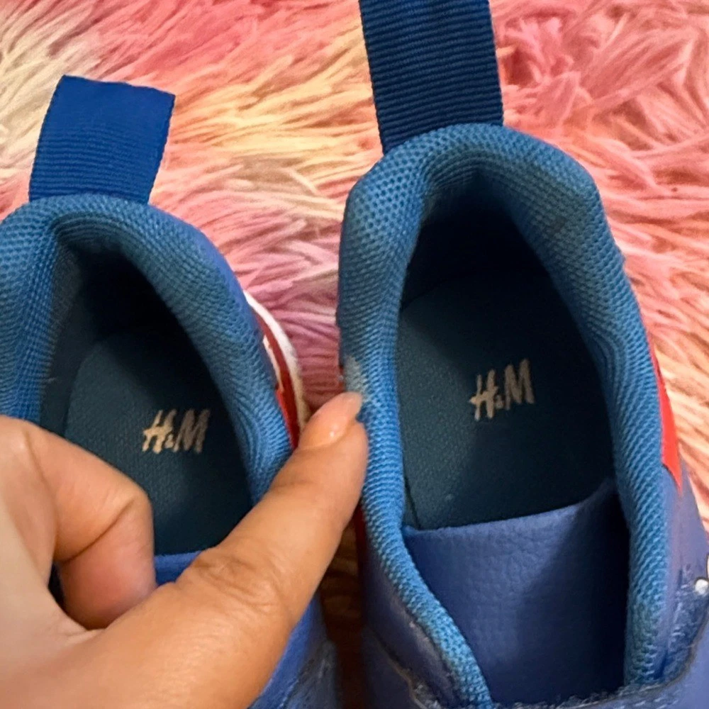 Bright blue sneakers featuring playful character designs. Ideal for active kids. Stylish and comfy.