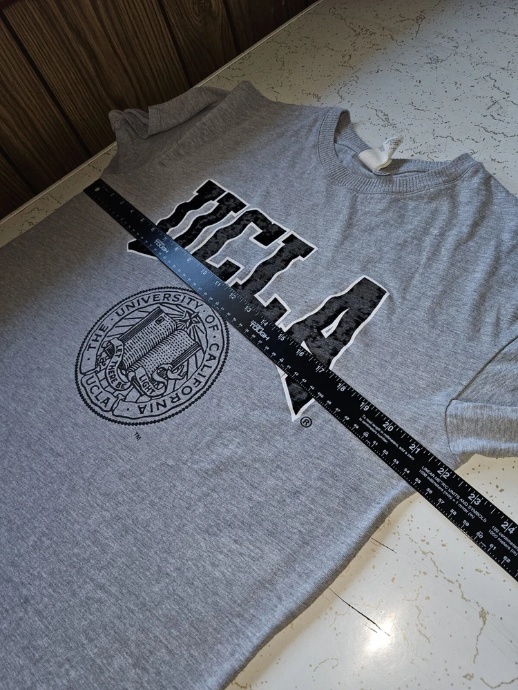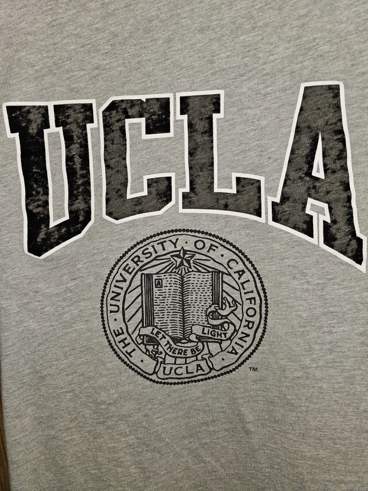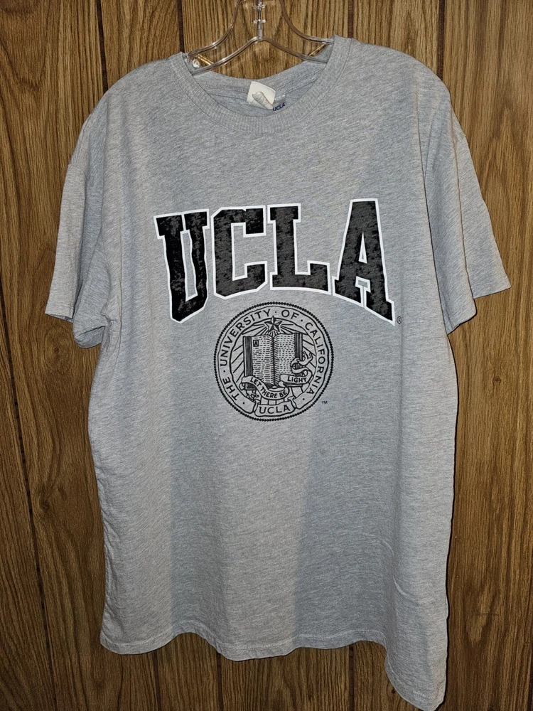 Elevate your game day attire with the H&M X UCLA Collaboration Men's Gray Graphic Logo T-Shirt. Designed for fans of the UCLA Bruins, this medium-sized shirt is perfect for showing your team pride during the regular season and beyond. The soft, gray hue is versatile, making it an ideal choice for any casual occasion. Officially licensed by the NCAA, this tee features bold graphics that celebrate your favorite collegiate football team. Crafted with quality fabric, it's a comfortable and stylish addition to any fan's wardrobe. Whether you're at the stadium or just out and about, this T-shirt is sure to be a go-to in your collection.