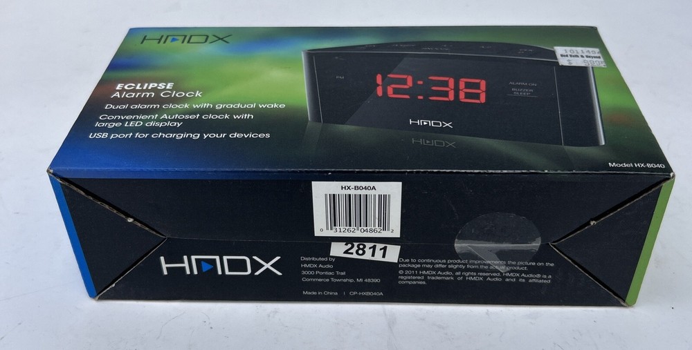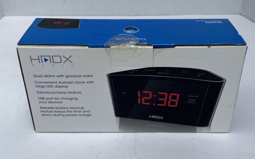 HMDX HX-8040 Sleep Digital Dual Alarm Clock USB Port Eclipse Autoset