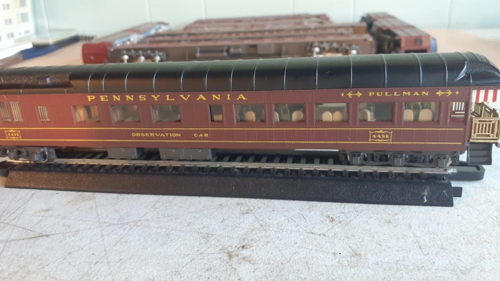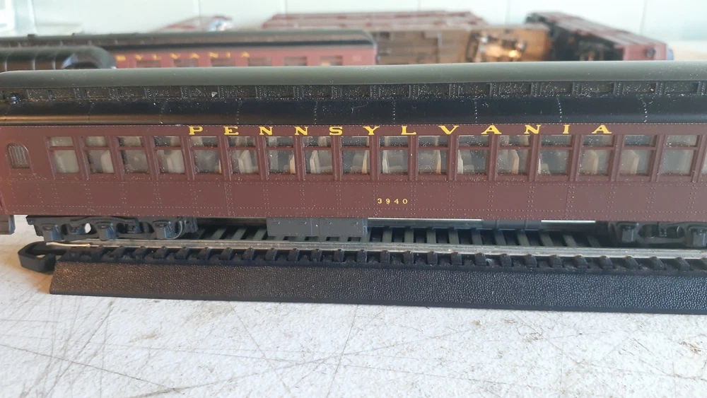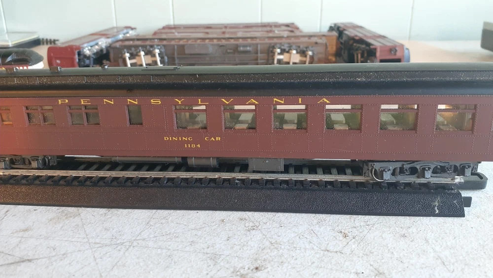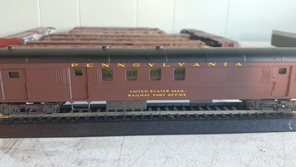 Gauge: HO Scale: 1:87 Assembly Status: Ready to Go/Pre-built Type: Passenger Car Color: Tuscan Red Grade: C-6 Very Good Corporate Roadname: PENNSYLVANIA gtin13: 8010023602275 UPC: 8010023602275 MPN: HO,Scale,Gauge,Rivarossi,Passenger,Car,Four,4,Pack,Set, Knuckle,Couplers,Metal,Wheels,Heavyweight,RT600227,600227, Baggage,Express,6120,RPO,6602,Combine,5076,Coach,1051, US,United,States,Railway,Post,Office,USPS,Mail,PRR,pennsylvania, Interior,Interiors Theme: Passenger Travel Brand: Rivarossi Material: Plastic Rail System: 2-Rail-2-Conductor Seller Notes: “LOCOMOTIVE RUNS SMOOTH AND LIGHTS-6 CARS ILLUMINATED”