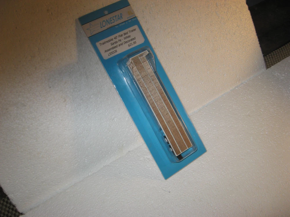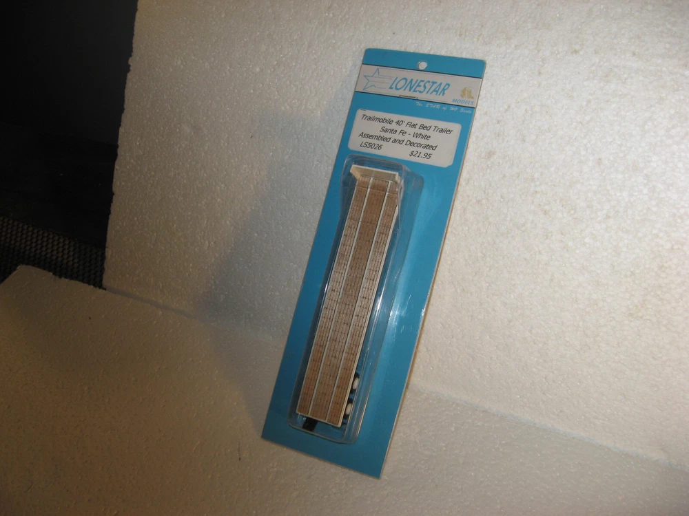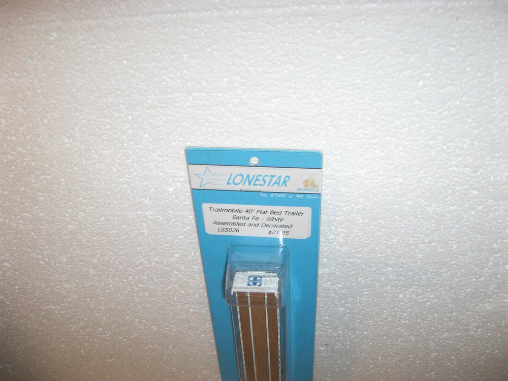 HOWDY FOLKS! THIS IS THE HO SCALE LONESTAR MODELS SANTA FE 40' TRAILMOBILE FLAT BED TRAILER! THIS IS A NEW ITEM, SEALED IN PACKAGE. USE FOR A LOAD OR PULLING A LOAD. PLEASE CHECK ALL PICTURES AND ZOOM RIGHT IN THERE! ONLY $20.00 AND YOU CAN BUY IT NOW IF YOU WISH TOO. ADD IT TO YOUR COLLECTION OR LAYOUT. WE COMBINE SHIPPING ON ALL OUR ITEMS. IF YOU NEED ANYTHING PLEASE DON,T HESITATE AND ASK! JUST USE CONTACT SELLER IN THE TOP OF THE LISTING ON EBAY EMAIL. THANK YOU AND TAKE GREAT CARE NOW!