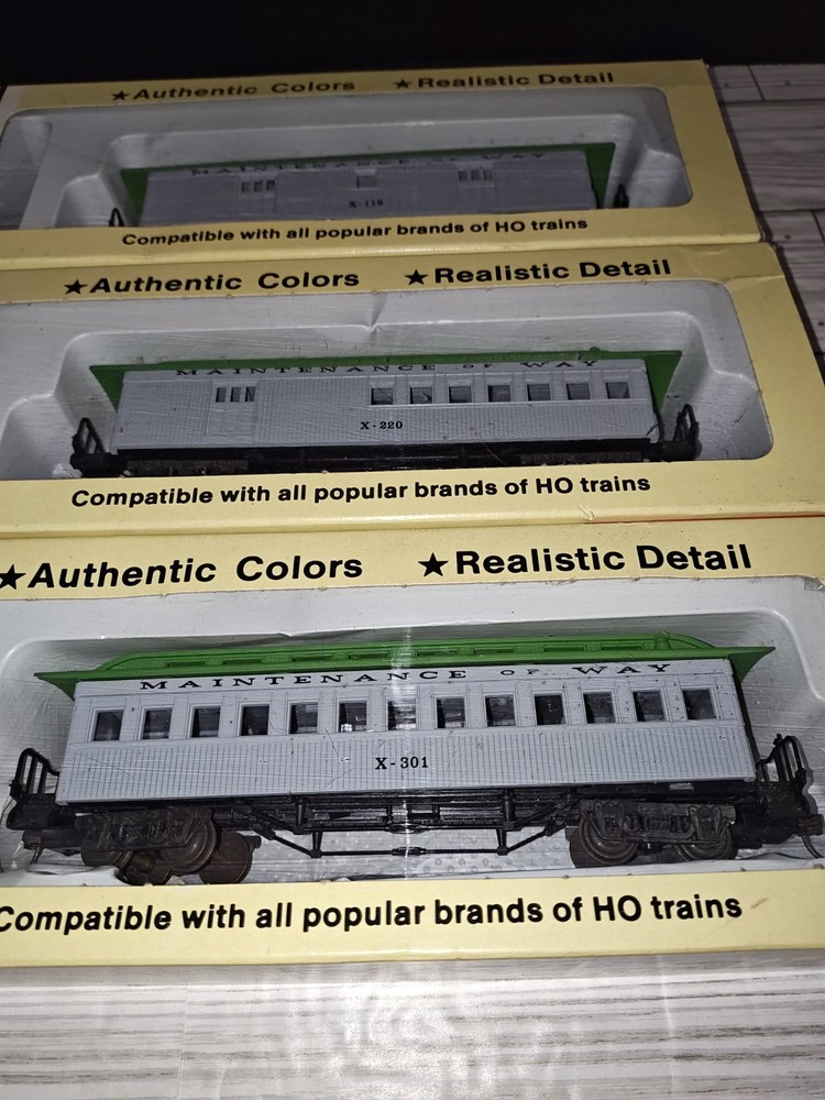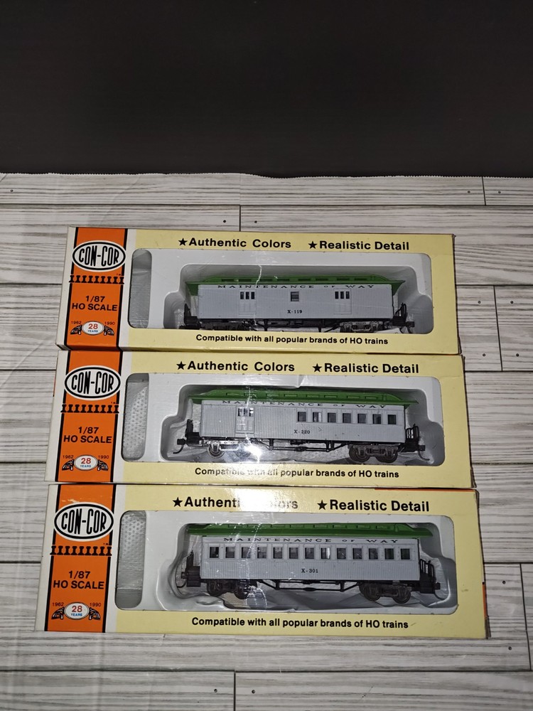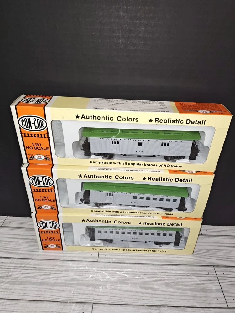 Con-Cor 1/87 HO Scale Maintenance Of Way Train Cars Set Of 3 Collectible Toys. Has some wear from age and storage. See pictures. Sold as is.