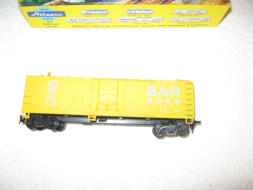 HOWDY FOLKS! THIS IS THE HO SCALE TRAIN MINIATURE BANGOR AND AROOSTOCK,REEFER. REEFER NUMBER IS 8089 ON SIDES AS WELL.HAS 5 STEPS MISSING 1,HORNHOOK COUPLERS,METAL AXLES,BRAKE WHEEL. HAS ONLY 2 HATCHES,MISSING 2. THAT MAKES IT A RESTORATION PROJECT. SHIP IN ATHEARN BOX.PLEASE CHECK ALL PICTURES AND ZOOM RIGHT IN THERE! ONLY $10.00 AND YOU CAN BUY IT NOW IF YOU WISH TOO. ADD IT TO YOUR COLLECTION OR LAYOUT. WE COMBINE SHIPPING ON ALL OUR ITEMS.IF YOU NEED ANYTHING PLEASE DON,T HESITATE AND ASK! JUST USE THE CONTACT SELLER ON TOP OF THE LISTING ON EBAY EMAIL. THANK YOU AND TAKE GREAT CARE NOW!