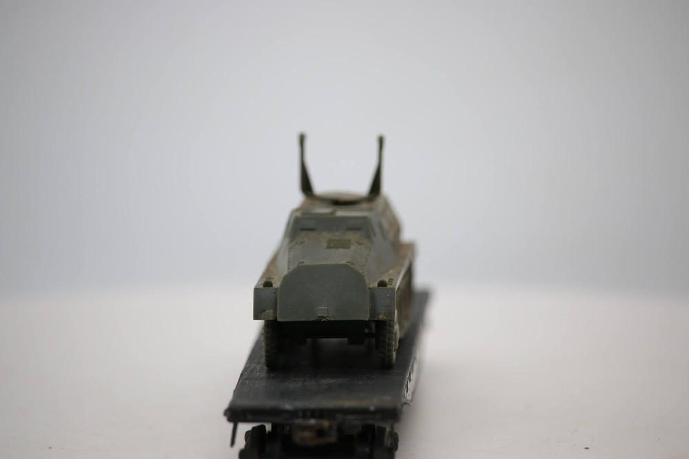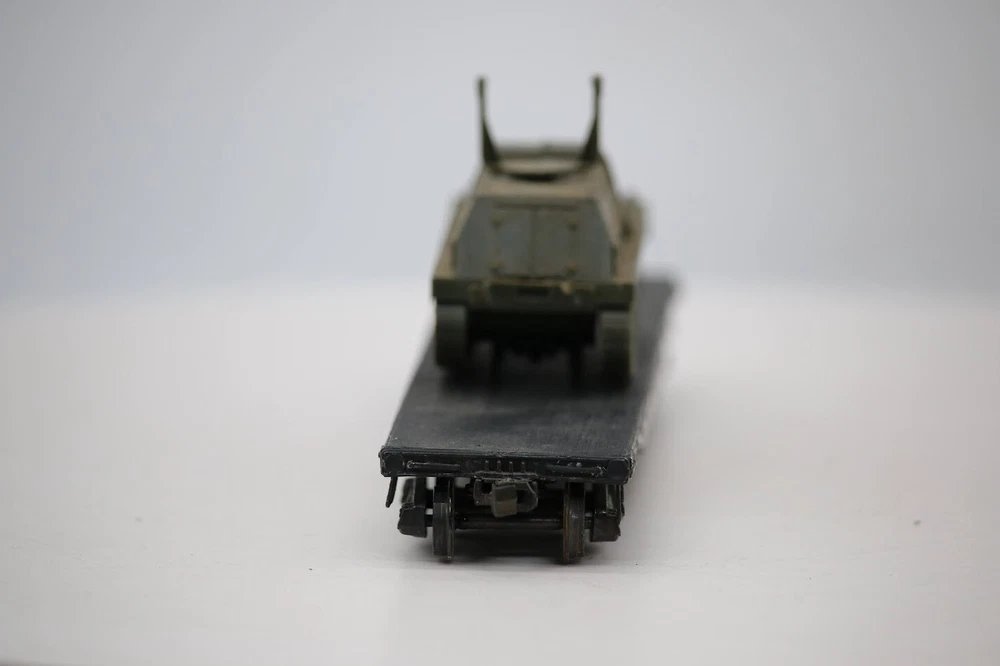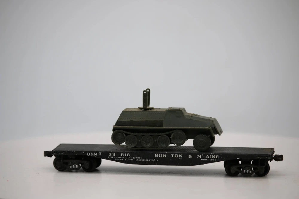 HO scale Assembled wooden Boston & Maine #33616 FLATBED Car w/ Plastic Army Load SKU#004424 PLEASE see photos for detailed condition!! There may be pieces that are missing or broken including, but not limited too, couplers, brake wheels, steps, ladders, railings, etc. May need detailed cleaning. PLEASE LOOK AT THE PHOTOS CAREFULLY BEFORE PURCHASING!! If you are purchasing more than one item from us and would like combined shipping, PLEASE request an adjusted invoice from us while still in the cart and BEFORE paying. eBay does not usually calculate combined shipping accurately and you might get overcharged. Please be aware that when we photograph items, we use lighting that will show the details well. Although we try to present the product as accurately as possible, the lighting may affect the overall look of the item by appearing lighter/darker or possibly a different hue than the actual item. Depending on the type of lighting you have in your home, there may be some differences between the photos and the actual item. If this is a concern of yours, please feel free to request additional photos made in natural lighting or ask for a more detailed description of the item PRIOR TO PURCHASE! PLEASE NOTE: We greatly appreciate your interest in our item for sale. We look forward to a pleasant, quick and satisfying transaction for everybody, so please note the following information before bidding. Thank you! ITEM DESCRIPTIONS: * We will try to describe items well and provide plenty of photos. Please review these carefully before bidding or purchasing. * Only the items pictured and described are what you will receive when purchased. * We will occasionally offer an item clearly marked "AS-IS". This means that we are not sure if it works because we are unable to test it for whatever reason. We will offer these at a discounted price than a similar "working" item. It is possible that these items will work fine, but it also is possible that these items are more useful for their parts. Please only bid on or purchase these items if you are well aware of this, as we will only provide refunds of actual item price (no shipping cost refunds) for these items. * If you have any questions that aren't addressed by the descriptions or photos, please feel free to ask before you bid. SHIPPING: * We usually do not offer shipping to international addresses, but ARE WILLING TO TAKE CONSIDERATIONS. * We try to pack items as carefully as possible, but damage may occur during shipping. If you receive an item that was damaged in shipping, please contact us and we will work with you to resolve the problem. * We will combine shipping costs for all items the same buyer purchases from us within 2 days. Please wait to pay for items until you're done shopping with us. Please contact us if you're expecting to buy more items from us, or to have us adjust the shipping costs. * We will usually ship items out within 24 hours of payment being received Sunday through Friday at noon. We will notify the buyer if there will be a delay in shipping for some reason. Please allow additional time for holidays and weekends when the post office is closed. If payment is received after noon (EST) on Friday, the item might not be shipped until the following Monday. * We do try to recycle shipping materials as much as possible. RETURNS: We abide by eBay's Money Back Guarantee. We definitely want our customers to be happy with their purchase! You may return an item within 30 days of receiving it with the following guidelines: * If the item is defective or damaged (unless we clearly marked the listing "AS-IS"), the buyer will receive a full refund after the buyer returns it and it is received by us. Customers who falsely claim their item is defective, damaged, or not as described in order to receive a full refund and free return shipping will be permanently blocked from making future purchases from us. * If the item is as described (including "AS-IS" items) and the buyer decides for any other reason than defective/damaged to return it, only the actual price of the item will be refunded once it has been returned and it is received by us. The buyer will be asked to pay all original and return shipping charges. This includes all reasons other than defective/damaged, including wrong size, wrong type, changed mind, etc. All "AS-IS" items will fall into this category of return. Please make sure the item is what you want before purchasing it. * Please contact us before initiating a refund request. FEEDBACK: We always leave feedback at the end of transaction. We consider the transaction to be over when we receive feedback from the buyer confirming the item arrived satisfactorily. If you are unsatisfied with your purchase please contact us before leaving neutral or negative feedback. WE APPRECIATE POSITIVE FEEDBACK IF YOU ARE SATISFIED WITH YOUR PURCHASE! THANK YOU FOR YOUR INTEREST IN THIS ITEM!
