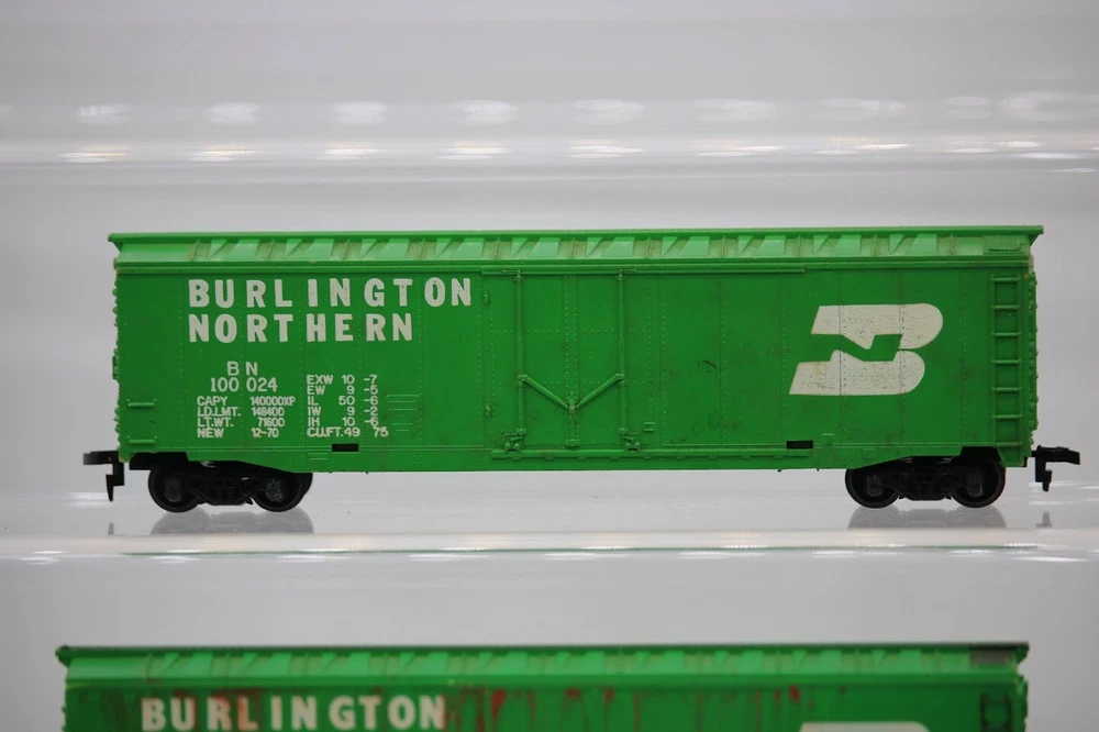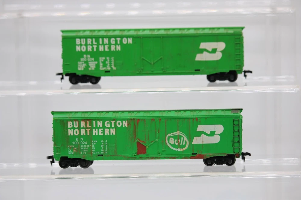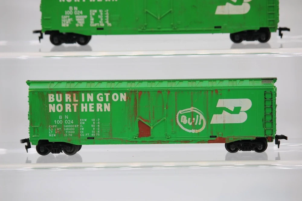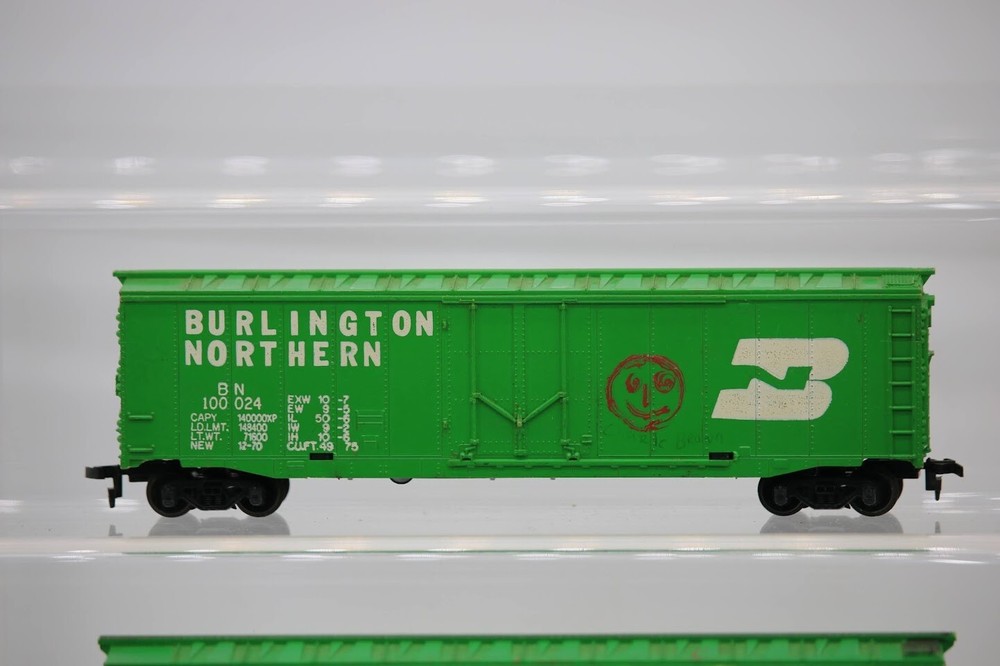 Ho Scale Custom Weathered and Graffiti Burlington Northern 10024 Lot of 2 SKU#004616 Look closely at the pictures to see further details. We ships USPS PLEASE see photos for detailed condition!! PLEASE LOOK AT THE PHOTOS CAREFULLY BEFORE PURCHASING!! If you are purchasing more than one item from us and would like combined shipping, PLEASE request an adjusted invoice from us while still in the cart and BEFORE paying. eBay does not usually calculate combined shipping accurately and you might get overcharged. Please be aware that when we photograph items, we use lighting that will show the details well. Although we try to present the product as accurately as possible, the lighting may affect the overall look of the item by appearing lighter/darker or possibly a different hue than the actual item. Depending on the type of lighting you have in your home, there may be some differences between the photos and the actual item. If this is a concern of yours, please feel free to request additional photos made in natural lighting or ask for a more detailed description of the item PRIOR TO PURCHASE! PLEASE NOTE: We greatly appreciate your interest in our item for sale. We look forward to a pleasant, quick and satisfying transaction for everybody, so please note the following information before bidding. Thank you! ITEM DESCRIPTIONS: * We will try to describe items well and provide plenty of photos. Please review these carefully before bidding or purchasing. * Only the items pictured and described are what you will receive when purchased. * We will occasionally offer an item clearly marked "AS-IS". This means that we are not sure if it works because we are unable to test it for whatever reason. We will offer these at a discounted price then a similar "working" item. It is possible that these items will work fine, but it also is possible that these items are more useful for their parts. Please only bid on or purchase these items if you are well aware of this, as we will only provide refunds of actual item price (no shipping cost refunds) for these items. * If you have any questions that aren't addressed by the descriptions or photos, please feel free to ask before you bid. * There may be pieces that are missing or broken including, but not limited to, couplers, brake wheels, steps, ladders, railings, minor rust spots or cracks, etc. May need detailed cleaning SHIPPING: * We usually do not offer shipping to international addresses, but ARE WILLING TO TAKE CONSIDERATIONS. * We try to pack items as carefully as possible, but damage may occur during shipping. If you receive an item that was damaged in shipping, please contact us and we will work with you to resolve the problem. * We will combine shipping costs for all items the same buyer purchases from us within 2 days. Please wait to pay for items until you're done shopping with us. Please contact us if you're expecting to buy more items from us, or to have us adjust the shipping costs. * We will usually ship items out within 24 hours of payment being received Sunday through Friday at noon. We will notify the buyer if there will be a delay in shipping for some reason. Please allow additional time for holidays and weekends when the post office is closed. If payment is received after noon (EST) on Friday, the item might not be shipped until the following Monday. * We do try to recycle shipping materials as much as possible. RETURNS: We abide by eBay's Money Back Guarantee. We definitely want our customers to be happy with their purchase! You may return an item within 30 days of receiving it with the following guidelines: * If the item is defective or damaged (unless we clearly marked the listing "AS-IS"), the buyer will receive a full refund after the buyer returns it and it is received by us. Customers who falsely claim their item is defective, damaged, or not as described in order to receive a full refund and free return shipping will be permanently blocked from making future purchases from us. * If the item is as described (including "AS-IS" items) and the buyer decides for any other reason than defective/damaged to return it, only the actual price of the item will be refunded once it has been returned and it is received by us. The buyer will be asked to pay all original and return shipping charges. This includes all reasons other than defective/damaged, including wrong size, wrong type, changed mind, etc. All "AS-IS" items will fall into this category of return. Please make sure the item is what you want before purchasing it. * Please contact us before initiating a refund request. FEEDBACK: We always leave feedback at the end of transaction. We consider the transaction to be over when we receive feedback from the buyer confirming the item arrived satisfactorily. If you are unsatisfied with your purchase please contact us before leaving neutral or negative feedback. WE APPRECIATE POSITIVE FEEDBACK IF YOU ARE SATISFIED WITH YOUR PURCHASE! THANK YOU FOR YOUR INTEREST IN THIS ITEM!