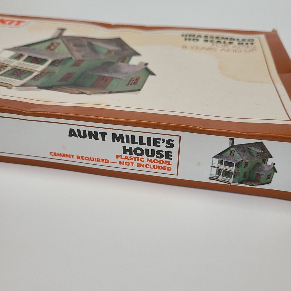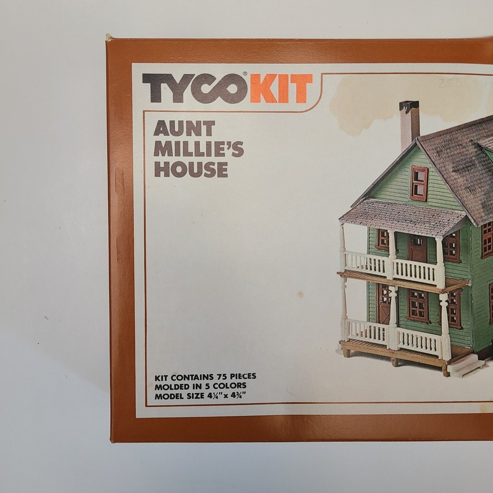 Year Manufactured: 1975 Material: Plastic Model: Aunt Millie 's Brand: TYCO Seller Notes: “The box is open but the kit has not been assembled. The box has stains on it. Please see pictures.” Country/Region of Manufacture: Germany Compatible Product: For Buildings Type: House Theme: House Gauge: HO Color: Multicolor Vintage: Yes Scale: 1:87