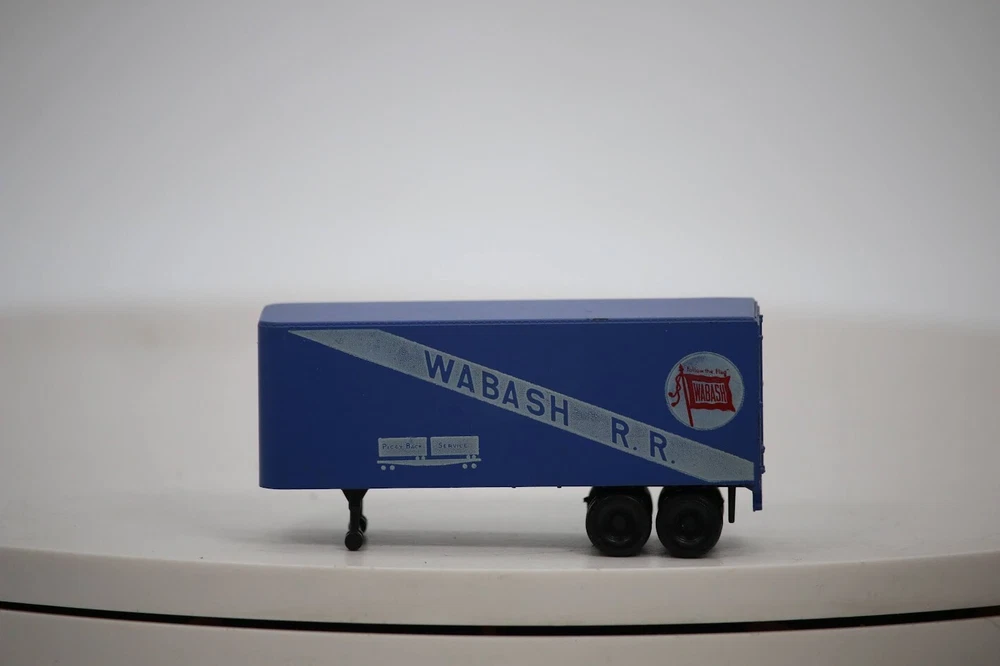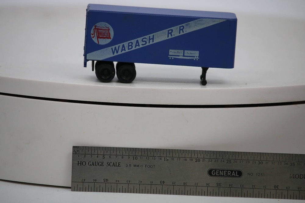 HO Scale Wabash R.R. semi trailer SKU#009673 PLEASE READ BEFORE PURCHASING Condition: Please review all photos carefully for details on the item's condition. Photos are part of the description, and any notable flaws will be highlighted. Combined Shipping: If purchasing multiple items, request a revised invoice before paying to ensure accurate combined shipping costs. Lighting Disclaimer: Photos are taken under bright lighting to highlight details, which may cause slight variations in color or hue depending on your lighting. If you need additional photos (e.g., in natural light) or more details, please ask before purchasing. As-Is Items: Items come AS-IS. The way they appear in our pictures is how the Item will arrive to you. What's Included: Only the items shown in the photos and described in the listing are included in the purchase. We strive to describe items thoroughly and provide clear photos. If you have any questions or concerns not addressed in the listing, feel free to ask before purchasing. Thank you for shopping with us!