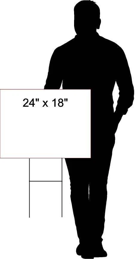 Durable Yard Sign ITEM DESCRIPTION *DURABLE SIGN: Work House Signs manufactures heavy-duty corrugated plastic signs that are waterproof and can withstand rain, snow, and sleet. Each corrugated plastic yard sign is 4mm thick making it tough and reliable. *HIGH-QUALITY: Each sign is designed using premium fade-resistant UV inks in bright, vibrant colors. The images and words won't peel or fade after years of use. *PERFECT SIZE: Measuring at 18 x 24 inches, this plastic sign is big enough for a bold message and can be seen from the road. *EASY TO READ: Our corrugated plastic sign features bold text and bright graphics so it can be spotted from afar. Our readable lawn or yard signs are ideal to give you high visibility and to extend your reach and advertisement efforts. *INCLUDES H STYLE METAL STAKE: Made from strong 9 gauge galvanized steel wire, this stake ensures durability and longevity that can withstand any weather conditions. Its zinc-plated finish adds an extra layer of protection against rust and corrosion. Designed with precision, the prongs easily fit into the vertical flutes of the long edge of an 18"x24" sign, providing secure and stable positioning. *WHY DO YOU NEED OUR SIGN? Help drivers get to the correct area and make both your lives easier. Advertise your business so people know who you are. Let others know your thoughts and opinions.