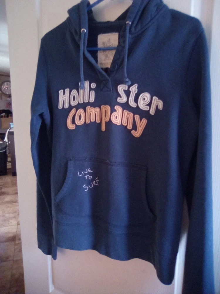 Size: L Occasion: Activewear Sleeve Length: Long Sleeve Closure: Pullover Brand: Hollister Fabric Type: Blended Fabric Neckline: V-Neck Type: Hoodie Size Type: Juniors Style: Pullover Department: Women Color: Blue
