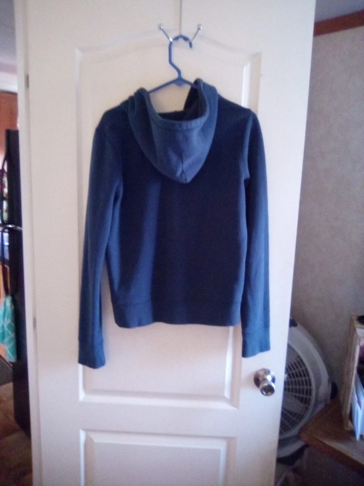 HOLLISTER WOMANS BLUE HOODIE V-NECK CUT BUTTON UP SIZE LARGE