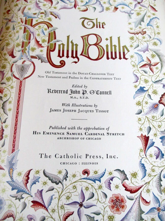 ENLARGED PICTURES!! Please scroll ALL the way down to view LARGER images. RT 111. Illustrated by James J.J. Tissot. Pub. Catholic Press Inc, Chicago. 1950. 10" Tall. 2 1/2" thick. All Edges Gilt. Flexible brown leather binding, oversized to "clamshell" Text. Leather dried out 4" split bottom front hinge, A couple of other small splits. Bright, pictorial gilt cover and spine. Good condition. Please do not hesitate to e-mail with any questions. As Always, Satisfaction Guaranteed! PAYMENT: PayPal, because eBay requires sellers to list electronic payments exclusively. I expect to receive payment within 10 days, unless we have made other arrangements. MEDIA MAIL: The majority of my books are sent Media Mail to U.S. customers. I add $1.00 for shipping materials, etc. (The shipping price that you see at the top of the page includes the handling fee.) PRIORITY MAIL: I will send both Media cost and Priority cost with invoice, on books which seem to warrant Priority service or when buyer requests it. I'm glad to combine multiple purchases in order to minimize shipping costs. I WILL SHIP INTERNATIONALLY, and I try to be as economical as possible with the shipping costs. Whenever a book will fit comfortably in a Priority Flat Rate Envelope, I'll send it that way. RETURN POLICY: Satisfaction Guaranteed! Payment I accept the following forms of payment: PayPal Shipping & Handling I'm glad to combine multiple purchases for less expensive shipping costs. US Shipping Please check eBay's Shipping & Payment tab USPS Media Mail® International Shipping Please check eBay's Shipping & Payment tab USPS Priority Mail International FREE scheduling, supersized images and templates. Get Vendio Sales Manager. FREE scheduling, supersized images and templates. Get Vendio Sales Manager. Over 100,000,000 served. Get FREE counters from Vendio today!