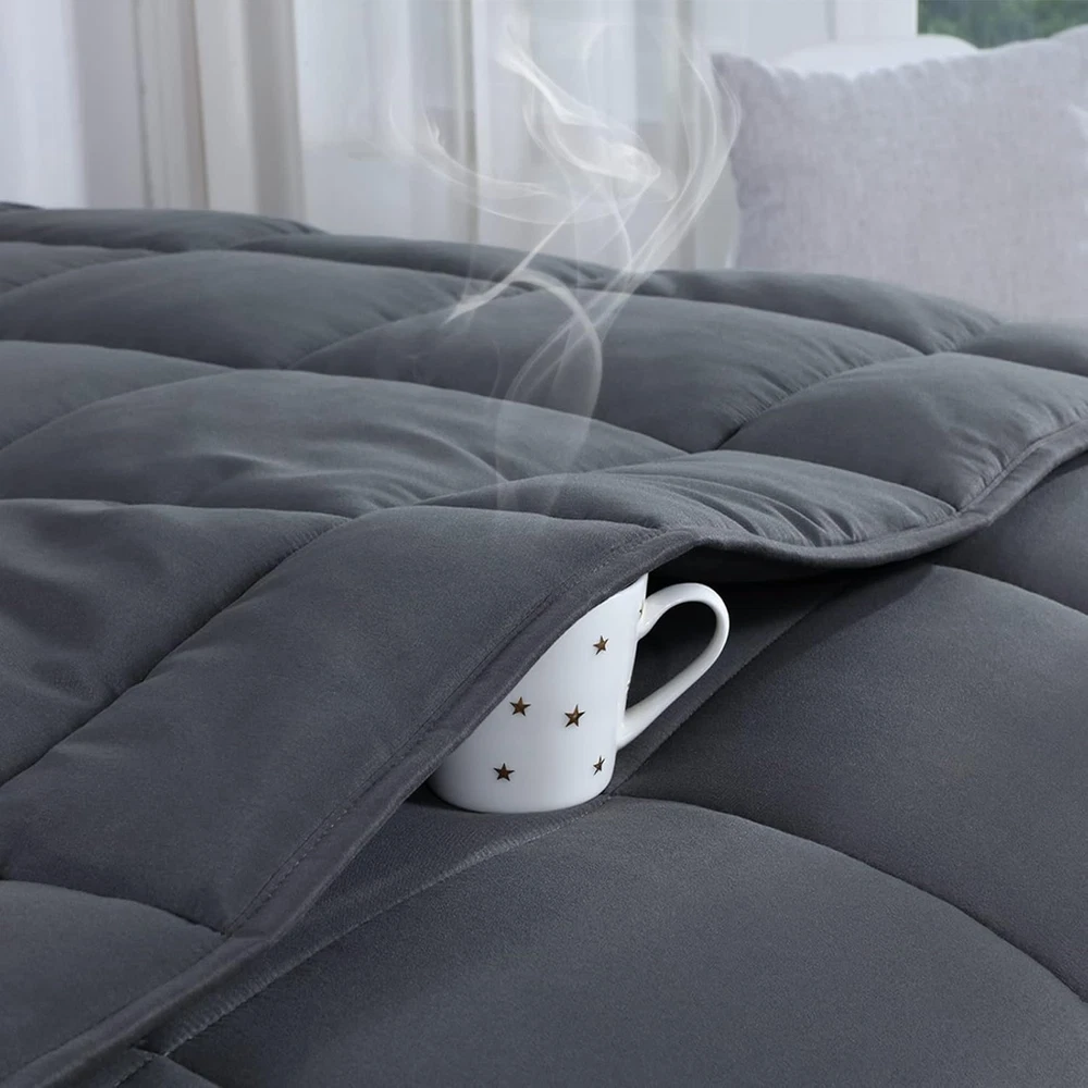 Store New Arrivals Add to Favorite View Feedback Contact HOMBYS Oversized King Comforter 136 X 120, Alaskan King Size Bed Comforter, Extra Large down Alternative Comforter Duvet Insert for All Season with Corner Tabs Description Style Modern Weave Type Plain Number of Items 1 Pattern Solid Country of Origin China Blanket Form Comforter Theme Plain Brand HOMBYS Unit Count 1 Count Product Dimensions 136"L x 120"W Material Polyester Age Range (Description) Adult Seasons All Manufacturer HOMBYS Water Resistance Level Not Water Resistant Item Weight 11.29 pounds Fill Material Polyester Special Feature Breathable Fabric Warmth Description Heavyweight Color Grey Recommended Uses For Product Napping Fabric Type 100% Polyester Product Care Instructions Machine Wash Size Alaskan King-136" x 120" 【Unique Alaskan King Size】11x10 Feet Oversized King bed comforter can cover whole mattress and hangs over the bed edge perfectly, you don't need to have a bed skirt for tall box spring bed. Long and big enough, no longer have to play tug of war all night with partner to stay covered up anymore.Fits for Alaskan King, California King ,King Bed 【All Season Oversized King Comforter】premium polyester fiber filling, perfect for year round use. 7 Hollow high hydrophilic fiber filling technology traps the air and locks-in the warmth.It feels fluffy and cozy,just feels like you are sleeping inside a cloud.Elegant Box stitch Sewn Through design secure the filling in place, prevent filling shifts and bunches up. After many washing test, the comforter still keeps fluffy and warm. MACHINE WASH, say goodbye to clean trouble. 【Goodnight Promise】 Made of brushed microfiber cover, which is super soft and breathable to provide you with a noise-free, ultra-comfortable night's sleep. The high quality and evenly distributed filling makes the comforter light and fluffy, you won't feel the pressure of the comforter, and it will bring you a comfortable sleep all night long.. 【Box Stitching and Corner tabs】The classic box stitching technique prevents the filling from shifting or leaking and distributes it evenly for long-lasting insulation. With 8 corner tabs, you can easily add duvet covers to hold the comforter in place. 【Easy Care】 Machine wash separately in cold water, sun dry or tumble dry low when needed, no shrinkage, no fading, saves you a lot of time and effort. Do not bleach. Product Description The video showcases the product in use. The video guides you through product setup. The video compares multiple products. The video shows the product being unpacked. 1 Breathable 2 Soft Fabric 3 Cloud Like Filling 4 Corner Loops 5 Material Information ABOUT US We offer the best prices around on high quality products. Our E-store includes media such as books, movies, music and games while offering electronics, toys, sporting apparel, clothing, tools, general home, garden items and more. SHIPPING We are always working hard to ensure your package arrives as soon as possible. Please understand that some factors like weather, high postal traffic, and the performance of shipping companies are outside of our control. We offer free shipping to the lower 48 states and ship within 2 business days of payment, usually sooner. We do not accept P.O. Boxes. Please provide a physical address. RETURNS We offer a 30-Day Return Policy on items which you are not completely satisfied with. You have the option for a full-refund or an exchange of the item. No returns are available on items shipped outside of the USA. PAYMENT We accept PayPal. CONTACT US This page content is yet to come Please ad us to your favorite seller and visit again later Thank You CUSTOMER SATISFACTION We try our very best to make sure every customer is completely satisfied. If there's a problem, message us! We're happy to help.