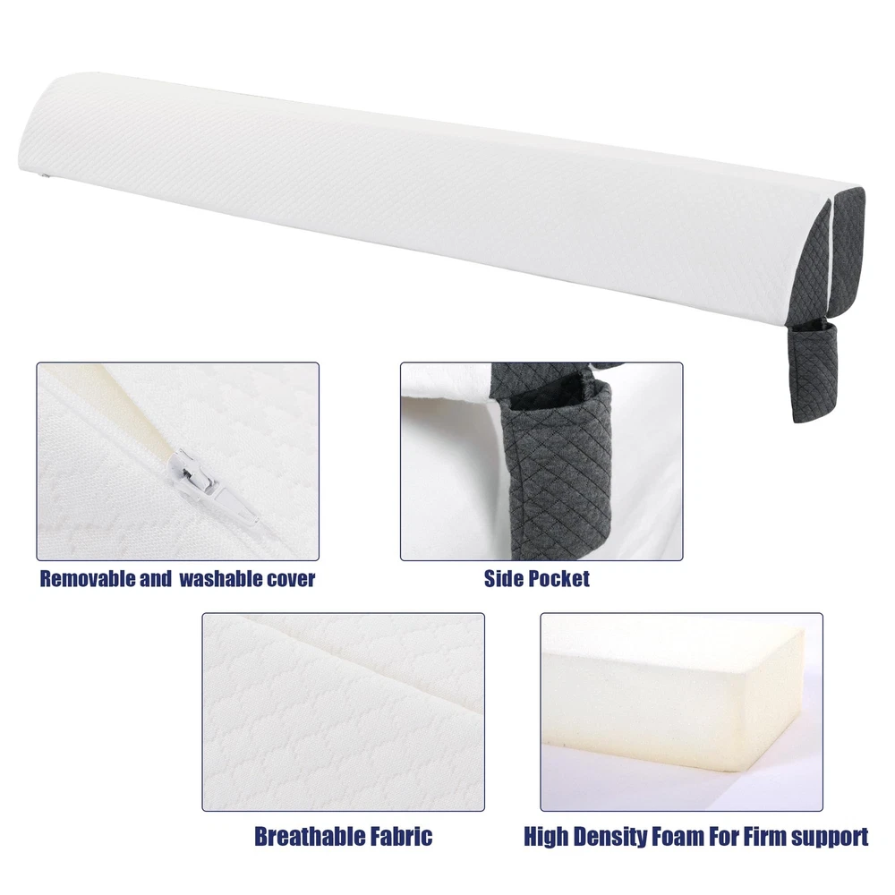 HOMBYS Pillow Wedge for Headboard Gap,Mattress Wedge Gap Filler Full Size,Bed Crack Pillow,Foam Bed Gap Filler,Multifuctional Headboard Space Filler with Side Pocket,Fill The Gap (0-7") Product Details Size: Full(54x6.3x6 in) Color: White & Grey Brand: HOMBYS MPN: PJCFTCW UPC: Does not apply EAN: Does not apply Brand: HOMBYS Special Feature: Foldable Color: White & Grey Size: Full(54x6.3x6 in) Fill Material: Memory Foam Brand: HOMBYS Special Feature: Foldable Color: White & Grey Size: Full(54x6.3x6 in) Fill Material: Memory Foam Shape: Rectangular, Wedge Age Range (Description): Adult Recommended Uses For Product: Sleeping Use for: Whole Body Material: Foam, Memory Foam Item Firmness Description: Soft Product Care Instructions: Machine Wash Number of Pieces: 1 Pattern: Solid Material Feature: Breathable Fabric Type: 100% Polyester Model Name: Wedge Pillow Headboard for Bed Gap Manufacturer: HOMBYS Product Dimensions: 54"L x 6.3"W Unit Count: 1.0 Count Item Weight: 2.89 pounds Country of Origin: China Item model number: PJCFTCW Date First Available: March 21, 2024 Close 0- 7 inch gap:Our engineers optimized and upgraded the gap filler to a folding type according to our customers' needs, making it suitable for most beds. Roommate's Bed Gap Pillow is perfect for your headboard and mattress, preventing objects from slipping off the bed and reducing noise. When the Mattress Wedge Gap Filler becomes rectangular, it fills gaps from 0 to 7 inches wide. No more bending over to look under the bed for fallen objects! PERFECT BED PILLOW COMPANIONS - Uniquely designed mattress gap filler is adjustable for freestyle gap filling, and the triangles on the wedge pillow can be flipped into a rectangular pillow. Cover the space between the bed and the wall or add a cover to fit exactly what you expect. HIGH DENSITY PREMIUM FOAM The HOMBYS Wedge Pillow Plug is made of 25d high density memory foam, which provides superior durability and support without collapsing. As a result, our bed wedge pillow plugs are sturdy enough to block seams and prevent the pillow from slipping. Even after prolonged use, the wedge sleep pillow will not lose its shape or support due to compression. Removable Cover- The headboard pillow is made of skin-friendly and breathable fabric, odorless, soft and silky. Zipper design allows you to remove the pillowcase for replacement and cleaning. Machine washable, no pilling for long time use. Fully Unfolded in 48 Hours - Compressed for optimal transportation. The headboard pillow will keep its shape for a long time without deforming. Meanwhile, it is soft enough to be used as a cozy headboard cushion on your bed.