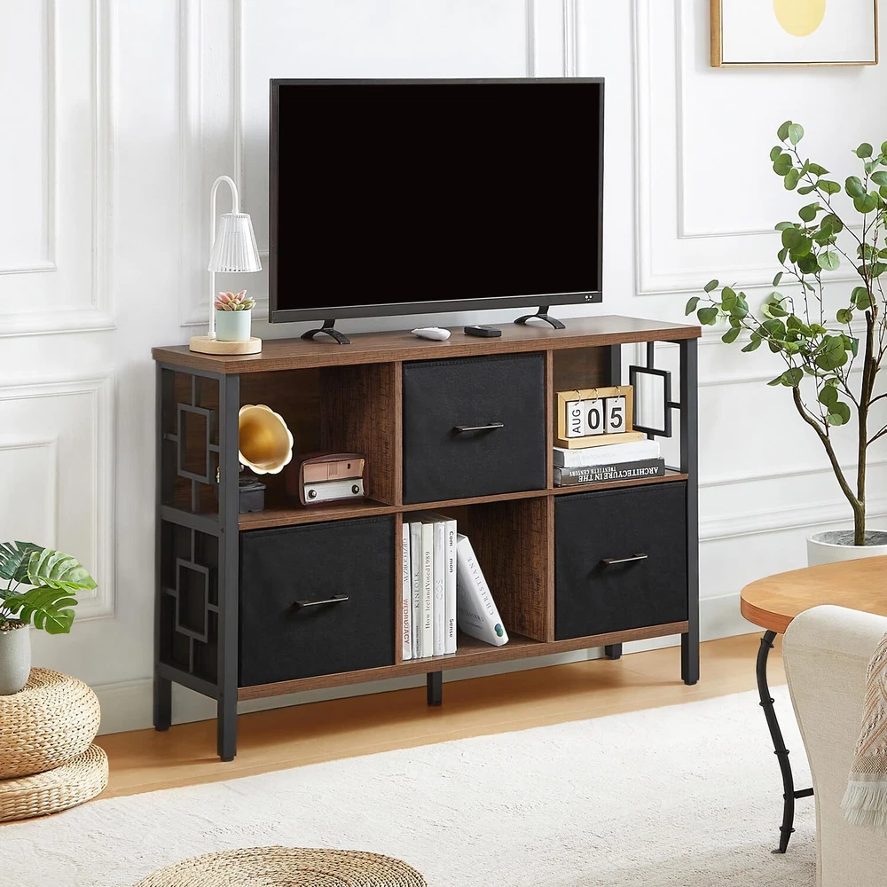 【Rustic industrial design】HOMISSUE 6 cube storage organizer features an industrial-style metal frame combined with unique textured boards, the geometric side structure adds a striking highlight. The side of the cube bookshelf is designed to increase safety by preventing items from falling. The cube bookcase exudes a charming rustic aesthetic, making it a perfect addition to your home. 【Large storage space】This 3-tier bookshelf offers large storage space, including 6 square storage spaces and a large platform at the top, keeping your belongings organized. The horizontal bookshelf also comes with 3 additional foldable cube storage bins, giving you more space to store your items efficiently. 【Multi-scenario application】You can place the short bookshelf in your living room or office as a rustic bookcase or storage unit, and even use it in the kid’s room as a toy storage cabinet. Additionally, Homissue bookcase can serve as a TV stand, providing a perfect display for your television. Whether for storage or showcasing items, it meets all your needs. 【 High-quality materials】 The top tier of the horizontal bookshelf is crafted from 0.98” MDF board, supported by a sturdy metal frame. An additional metal support leg at the bottom enhances the overall stability and safety of the 3-tier bookshelf. The top tier can hold up to 330 pounds, while each cube storage is designed to support 110 pounds. Overall Dimension: 47.22” W x 12.8 ”D x 30” H. 【Easy to assemble】 The assembly process is easy and can be completed in 30 minutes if two people work together. With detailed instructions and all necessary hardware included, you can easily assemble this horizontal bookshelf. If you have difficulty assembling or using HOMISSUE 6 cube storage organizer shelf, you can ask our customer service for help. We'll get back to you as soon as possible.