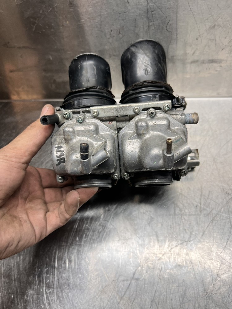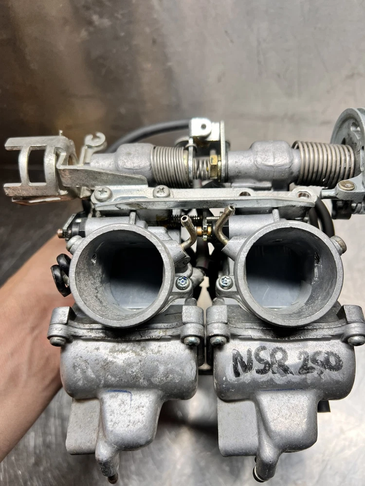 OEM Honda nsr250 carburettor set as shown, slides operate nicely. Been sitting a long time would suit pulling down to clean at least Fixed price postage in Australia. Overseas postage at cost. Pictures form fitment and condition description. Please note i will combine shipping, ebay combined shipping setup isnt great. Message me after your multiple item purchase so i can refund the difference. I dont ship through the ebay app so this is the easiest way for me to sort it out. PLEASE NOTE EVERYTHING I HAVE IS LISTED ON EBAY. I can only give so much fitment advice on a bike ive never seen, please reference your part book for fitment advice.