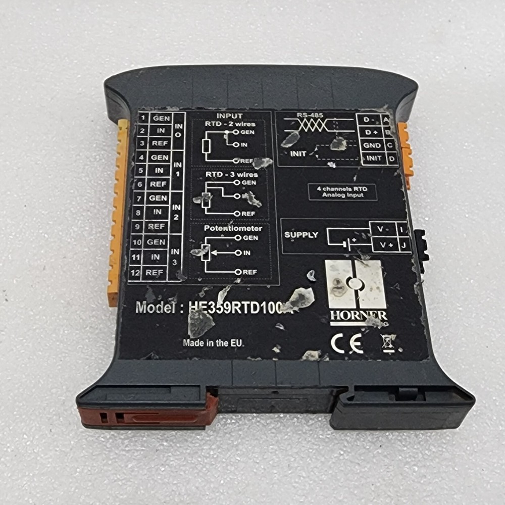 We are pleased to offer HORNER HE359RTD100A 4-CHANNEL RTD ANALOG INPUT MODULE Product Detail: HORNER HE359RTD100A 4-CHANNEL RTD ANALOG INPUT MODULE PART NO: HE359RTD100A TYPE: 4-CHANNEL RTD ANALOG INPUT MODULE Shipment processing time: All orders are processed within 1-2 business days. Orders are not shipped or delivered on weekends or holidays. Shipment confirmation & Order tracking: You will receive a Shipment Confirmation email once your order has shipped containing your tracking number(s). The tracking number will be active within 24 hours. Customs, Duties and Taxes: We are not responsible for any customs and taxes applied to your order. All fees imposed during or after shipping are the responsibility of the customer (tariffs, taxes, etc.). Damages: In case of damage or lost of shipment during transit, We will investigate the matter and provide the satisfactory resolution. Returns Policy: We offer return or exchange of ordered item up to 30 days of receipt of goods in subject to certain condition. In case of damaged goods we shall offer the replacement or refund for the ordered item. If you require any more details, request you to send us the direct message through eBay for early resolution. Thanks