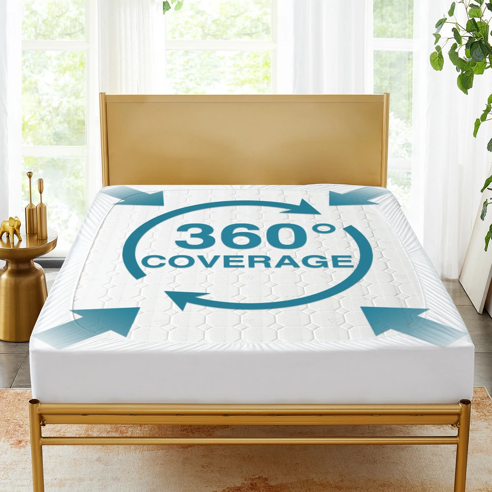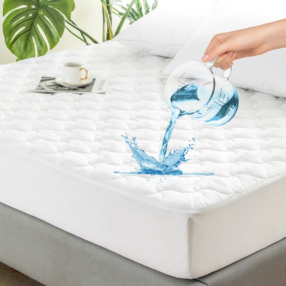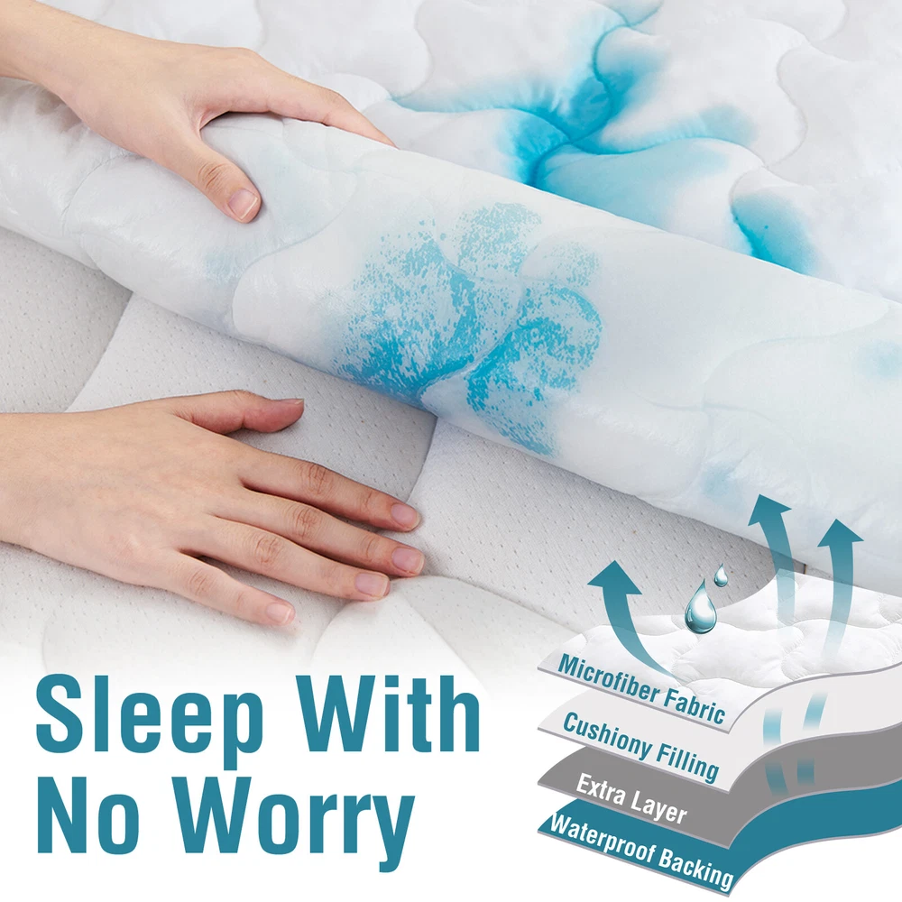 Description Twin: 39" x 75" TwinXL: 39" x 80" Queen: 60" x 80" King: 78" x 80" Full: 54 x 75" 100% WATERPROOF & SLEEP WITH NO WORRY Mattress Protector: LINENS mattress pad 100% waterproof TPU membrane, protecting your mattress from all kinds of fluid accidents, like perspiration, urine or drinking. Perfect potty training mattress pad protection for kids, elder or pet. No need to worry about spilt drinks or bedwetting stains when using our mattress protector. SOFT & COOLING BED MATTRESS PAD: LINENS waterproof mattress pad is cushiony fill features moisture-wicking fibers that helps to keep you cool and dry for a better night’s sleep. ( with 6oz of polyester fiber filled mattress protector).Equipped with our mattress pad protector,the bed will be a place you're not willing to leave. DEEP POCKET & 360°FULLWRAP DESIGN Mattress Protector: With deep pocket fitted mattress design, you can easily stretch the 85GSM Single-track elastic fabric of this mattress protector to 18 inches and surround the mattress in 360-degree to Avoid Moving!We use high-quality elastic band in the mattress pad to hold your mattress firmly in place,and the stretchable fabric makes the mattress pad easy to use. SKIN FRIENDLY Mattress Protector: Our quilted mattress pad is made of premium polyester on the surface, which is not easy to get pilling.And the TPU waterproof film is directly made on the bottom of the 6" classic moroccan style quilted to ensure that dust is trapped inside the mattress and the mattress protector has waterproof effect. The mattress pad cover is vinyl-free and ideal for children and the elder. EASY CARE Mattress Protector Pad:Cleaning the mattress pad is a simple task.Machine wash mattress protector in a commercial size front loading washing machine with warm water and mild detergent. Do not bleach, and natural drying LINENS mattress protector. TIP: After unwrapping, air our mattress pad for 24 hours to get a fluffy touch.Please click the “Add" button and purchase our waterproof mattress pad NOW!