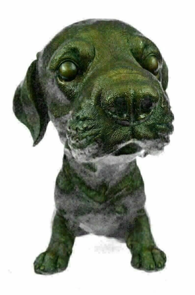 HOT CAST BRONZE DOG FIGURE SCULPTURE LAB LABRADOR RETRIEVER SIGNED MOORE FIGURE HOT CAST BRONZE DOG FIGURE SCULPTURE LAB LABRADOR RETRIEVER SIGNED MOORE FIGURE Condition : This sculpture is in perfect condition. Bronze Dimensions: Height 9" X Width 9" Weight: 10 LBS Inventory: 64DW1144846 Meet the delightful Labrador puppy immortalized in this adorable bronze statue, capturing the essence of puppyhood in a heartwarming pose. The puppy sits with an expression of love and adoration, gazing up at you with big, expressive eyes that convey happiness and contentment. His eyes are shut, indicating a moment of serene joy, and his paws are sweetly positioned together in front of him, showcasing a pose of innocence and charm. Crafted with meticulous attention to detail, this Labrador puppy statue is made of solid 100% bronze, ensuring durability and a timeless aesthetic. The use of the "Lost Wax Method" in the casting process preserves the intricate details of the sculpture and adds to its artistic value. The puppy's tail curls around his leg, adding a touch of playfulness to the overall composition. Signed by the artist Moore, this bronze sculpture not only captures the spirit of a beloved Labrador puppy but also serves as a testament to the artist's skill in bringing warmth and character to the medium of bronze. With its two-toned brown patina, this statue is a charming addition to any space, celebrating the joy and companionship that our furry friends bring into our lives. Bobble Head Style Floppy Eared Dog Cute Bronze Statue Sculpture Signed Collectible 9\" x 9\" DW-114 Video will open in a new window Using the eBay App? Paste link into a browser window: [isdntekvideo] Shipping Terms : Most of our items are shipped via USPS (United States Postal Service) mail or UPS. Most orders are shipped within 24-48 hours of purchase. Please be aware that not all items are available for USPS shipping due to size and weight. We do ship to Hawaii, Alaska, Canada, Puerto Rico, APO/AE, and U.S. Virgin Islands, however, an additional charge may be required. Please contact us before making any purchases in these areas. For Non-USA customers, you may be responsible for all duty, tax, brokerage fees that may be due upon delivery (shipping costs cover freight charges only). We also ship internationally. Please refer to the "Shipping and Handling" chart for the rates for each area. Payment : We accept just about any form of payment. PayPal, Master Card, Visa or American Express credit cards. Money orders, cashiers checks, and even personal or business checks. For governmental institutions, we will also accept a purchase order. Please understand that for personal or business checks we have to wait for the check to clear (usually 7 days) before shipping. Condition : New Detailed Hand Crafted Hot Cast Bronze Satisfaction Guaranteed. This is Stock Photo, Slight Color Variation!! Listing and template services provided by inkFrog