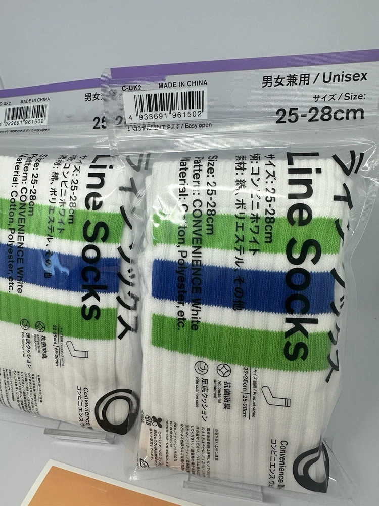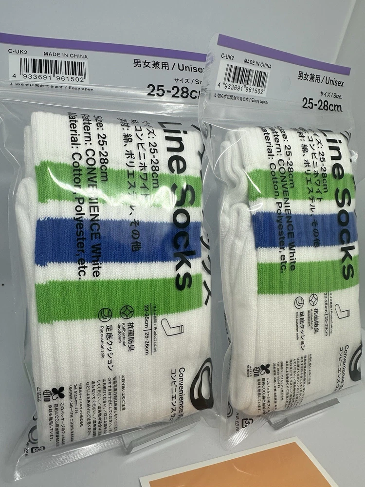 HOT ITEM! Konbini Original Family Mart Color Line Socks Convenience White Limited 2 pairs set About This Items These socks are exclusive to FamilyMart and are extremely popular on social media. They're also a popular souvenir for tourists visiting Japan. Take this opportunity to try them out! Family Mart Line socks Blue and Light green Line size: 25-28cm(JPN) ,7-10(US Mens), 8-11(US Womens) Line socks for both men and women. The soles are thick pile-knit with the brand name printed on them. Antimicrobial and deodorant processing prevents odor. Wear as high socks. Wear them loose and slouchy. Condition NEW Shipping We always send the item with a tracking number. So please place an order without any concern on delivery. You can always track the delivery status. Shipping is only available to the address registered in eBay. If you want us to send another address, please change your address on eBay and then place an order. Shipping is available from Monday to Friday. Weekends are not available because freight (shipping) companies are closed. About Importer's Obligation Import duties, taxes, and charges are not included in the item price or shipping cost. These charges are the buyer's responsibility. Please check with your country's customs office to determine what these additional costs will be prior to bidding or buying. Thank you for your understanding.