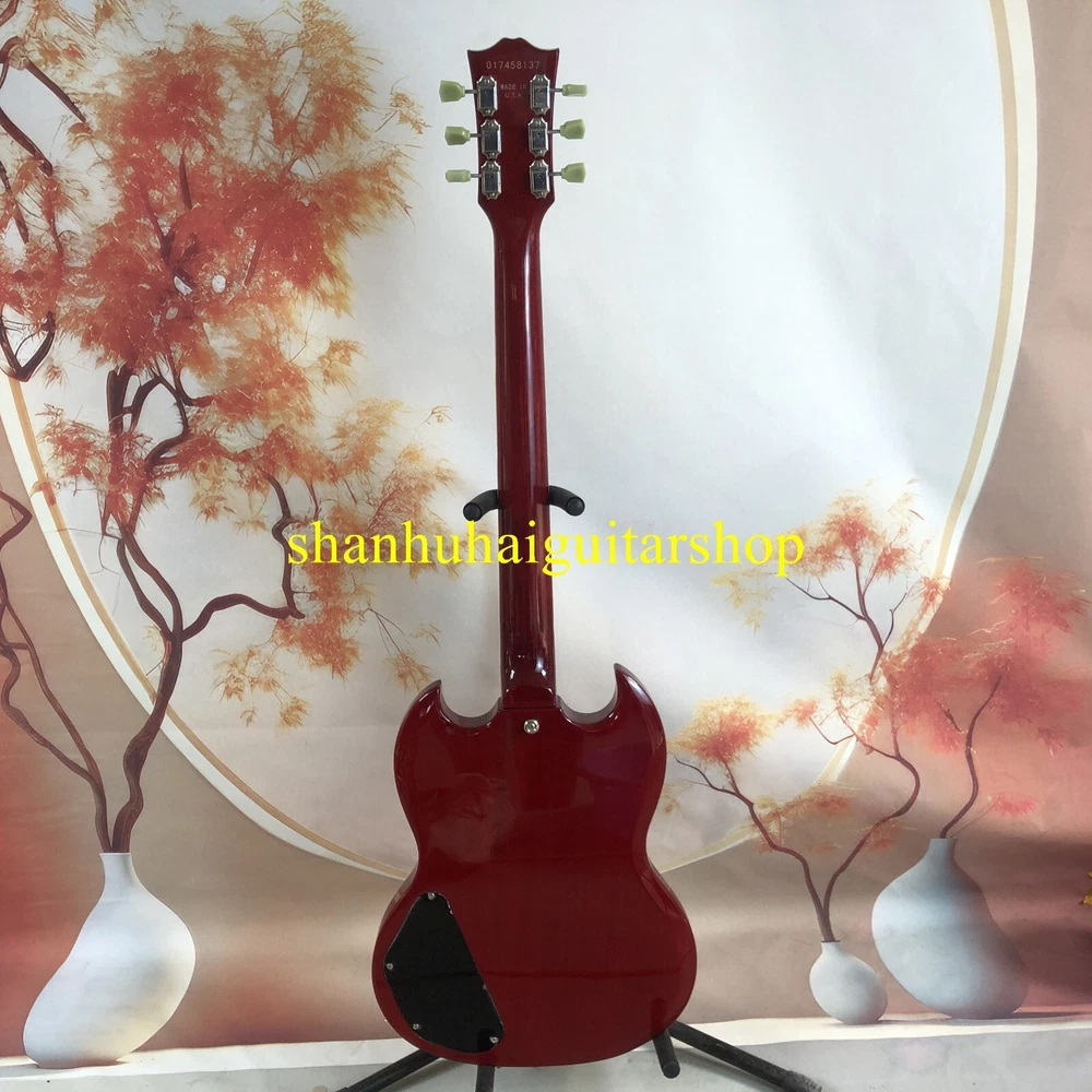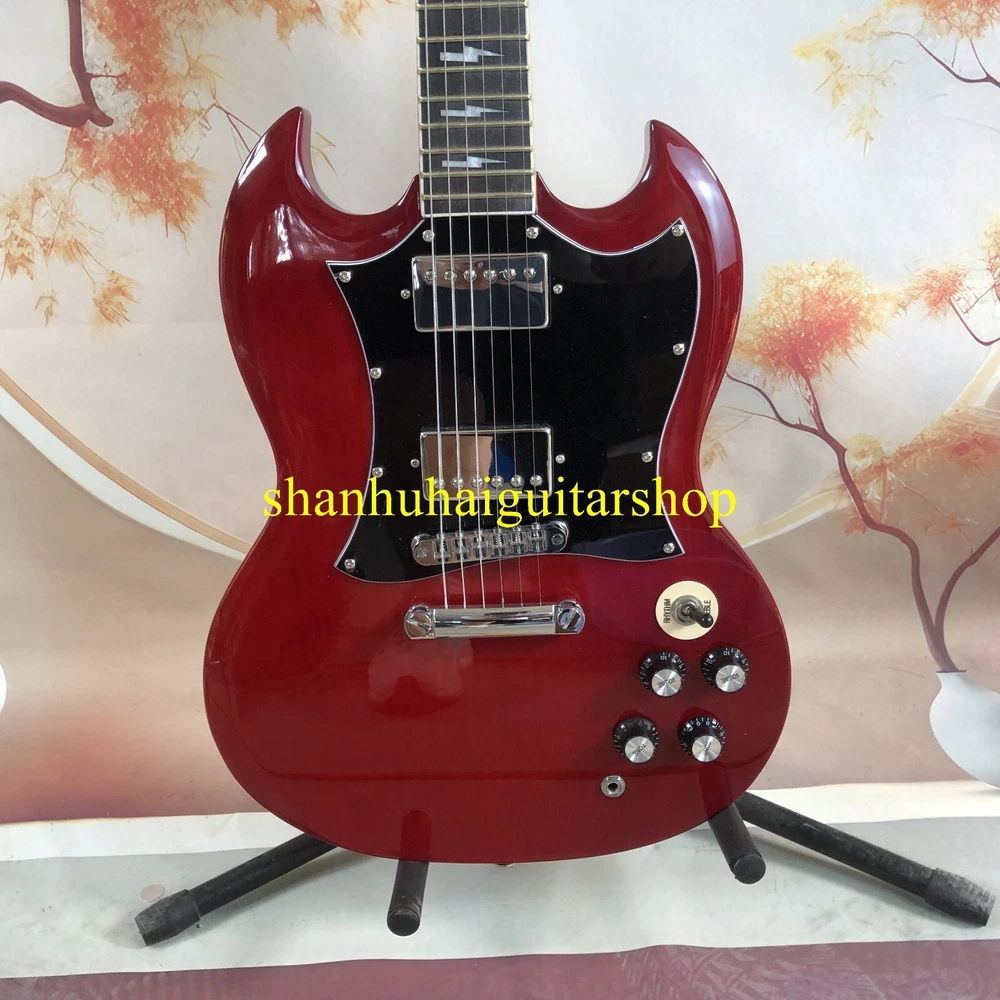 This SG electric guitar is a factory outlet item and comes with a cable. It has a solid body type and is made of mahogany body material. The neck is also made of mahogany and the fretboard is made of rosewood. This guitar has 22 frets and is a right-handed model. It is a professional performance level and is part of the Standard series. The model year is 2024 and it is a custom model. This guitar is perfect for anyone looking for a high-quality instrument.