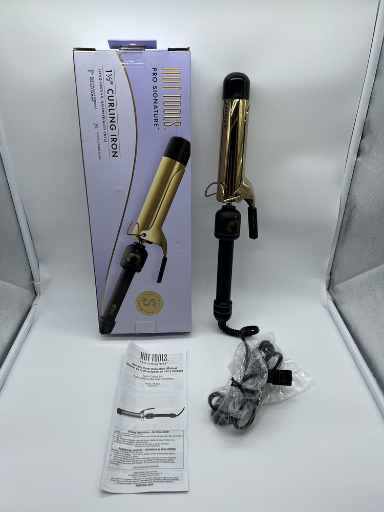 HOT TOOLS Pro Signature Gold Curling Iron, 1-1/2 inch. Used, tested it works. Item: I2
