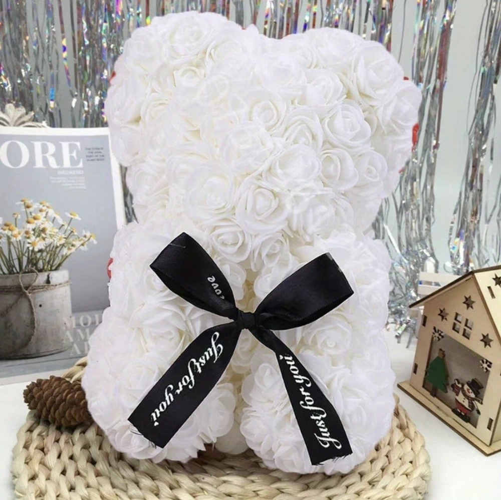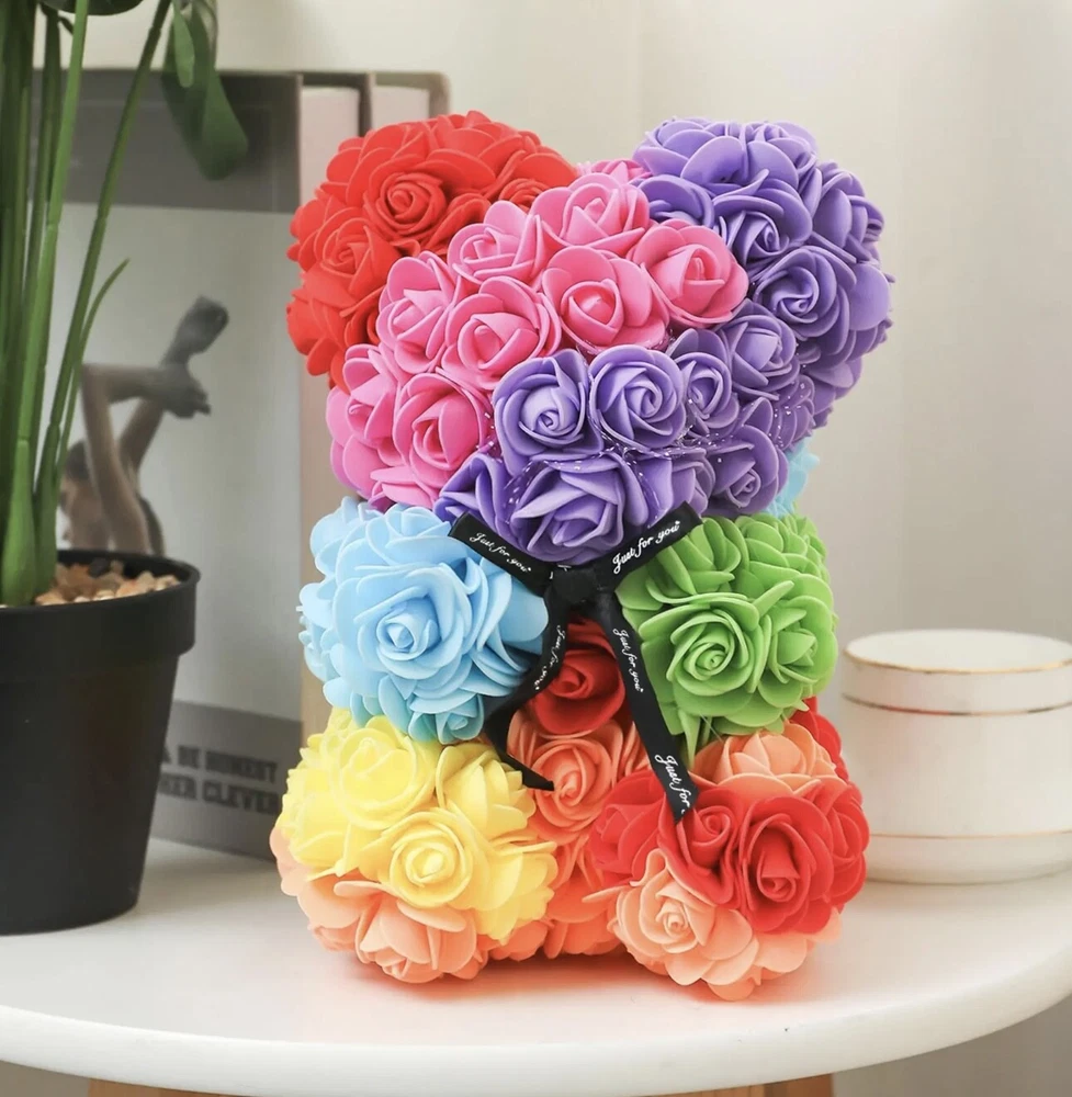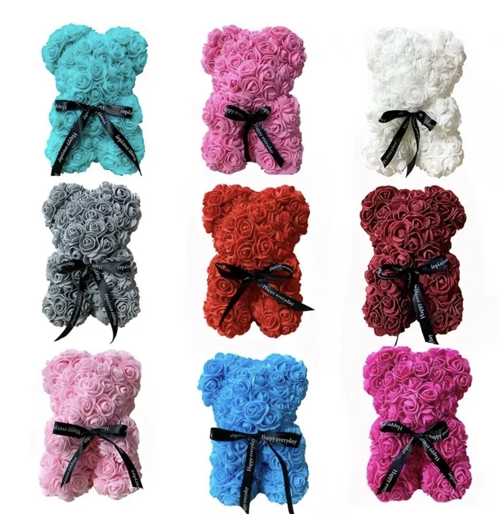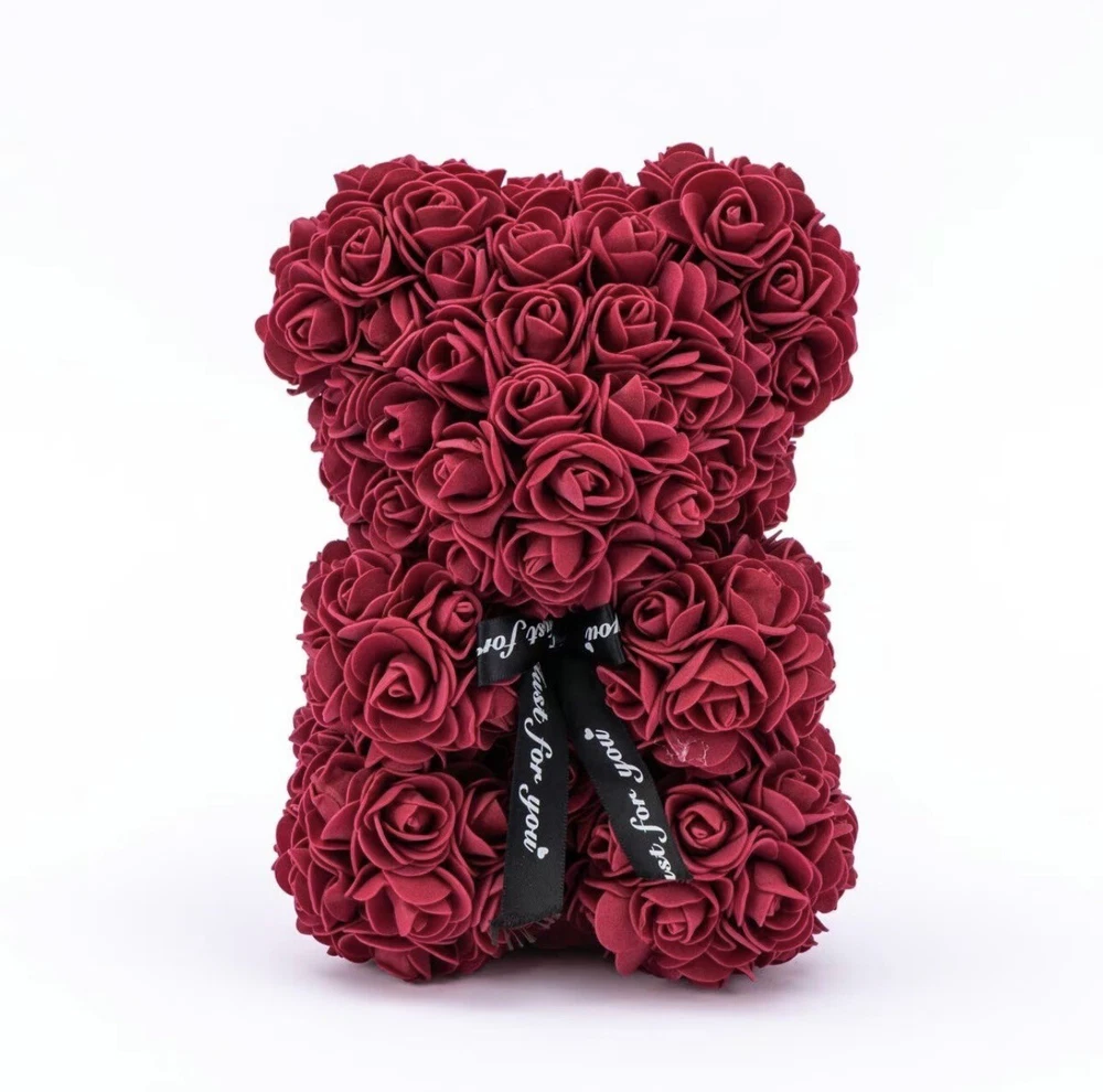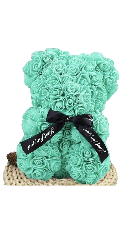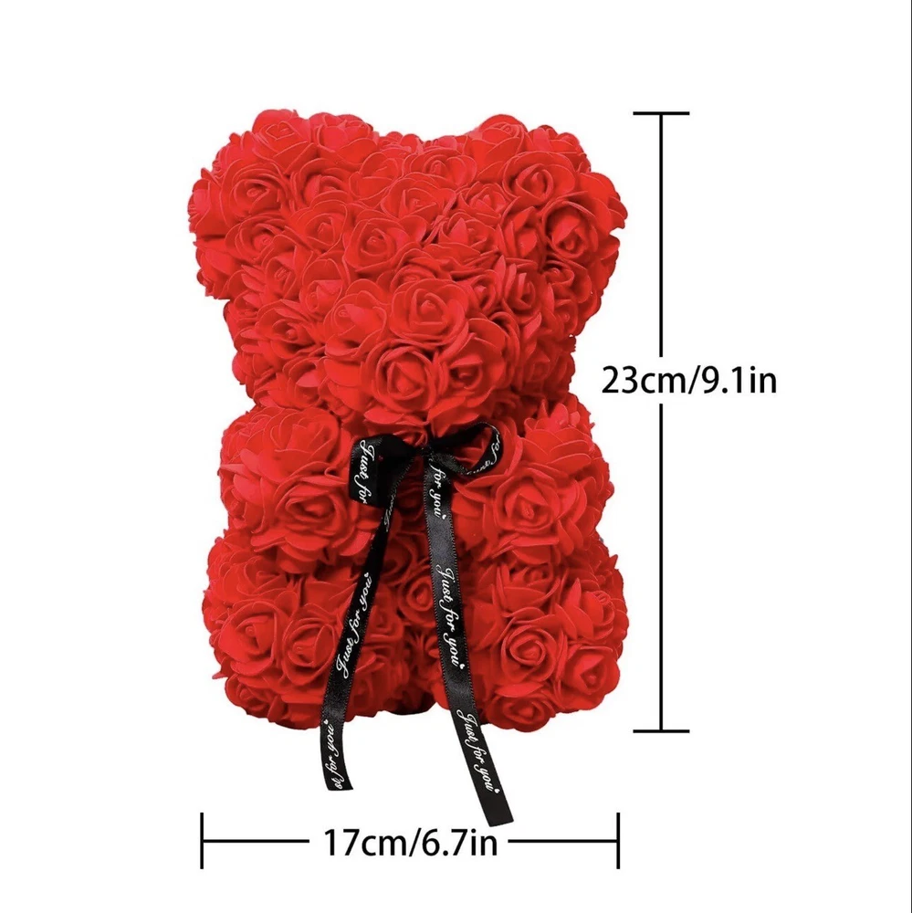 This beautiful Valentine's Day gift features a 25cm teddy bear made of soft and cuddly material, holding a pink rose flower bouquet. The flower bouquet is made of artificial, high-quality roses in a beautiful shade of pink. The assembled product weight is 2.68 oz and the dimensions are 0.82 x 0.59 x 0.59 Feet. This gift is perfect for anyone who loves unique and thoughtful presents. Use it to surprise your loved ones on special occasions like Valentine's Day, birthdays, or anniversaries. It will surely brighten up anyone's day and bring a smile to their face!