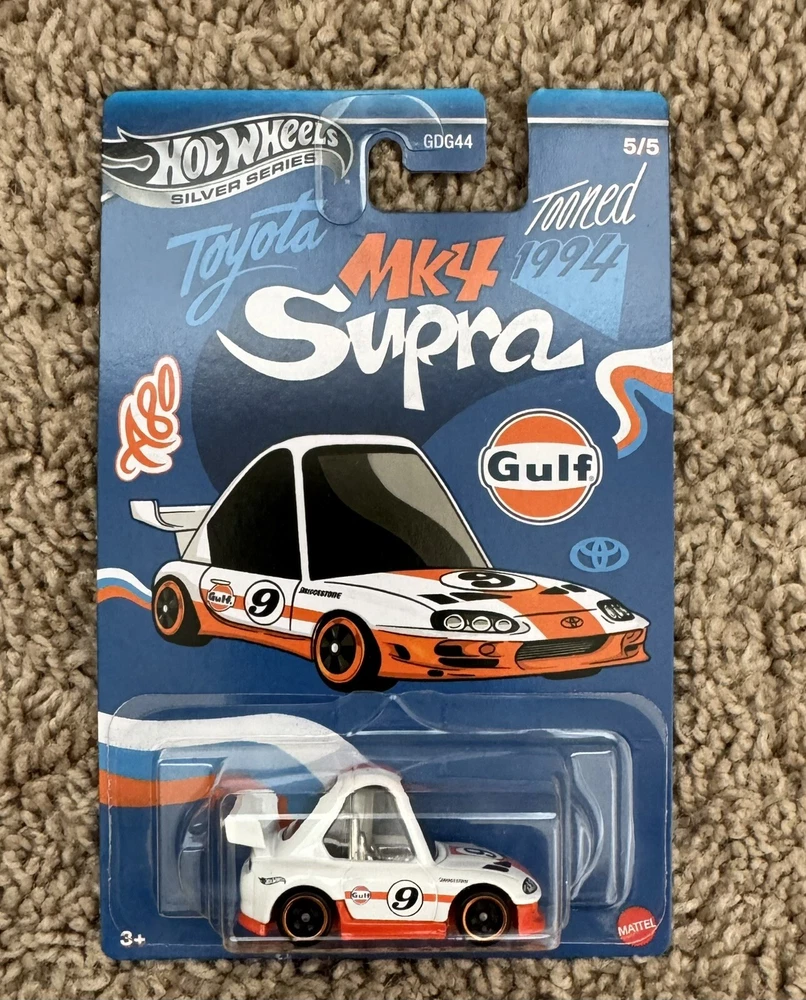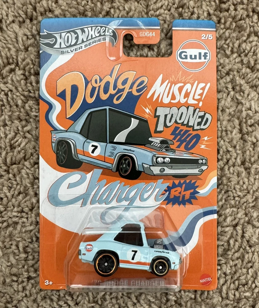 The Hot Wheels 2024 Gulf Tooned Full Set of 5 features diecast cars from the Hot Wheels Tooned series, specifically the Dodge Charger, Supra, and Manga Tuner models. The set includes the 2024 Gulf Tooned model in 1:64 scale, portraying a uniquely stylized design inspired by the Gulf color scheme. These cars are part of the Cars character family and are perfect for collectors or enthusiasts of contemporary diecast vehicles.