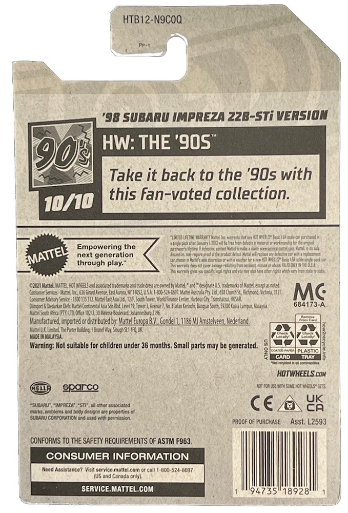 HOT WHEELS ‘98 SUBARU IMPREZA 22B-STI VERSION NEW 2024